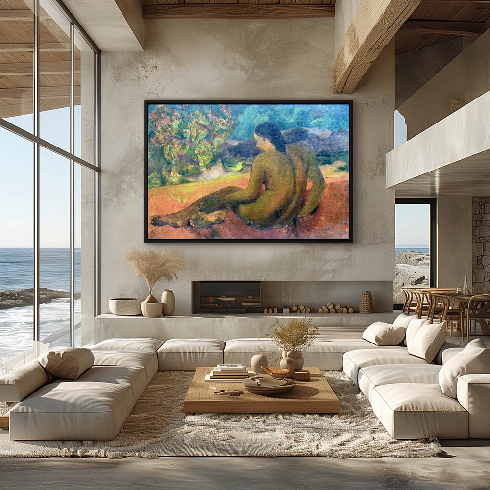 Vintage Nude Painting of a Young Tahitian Native Girl
