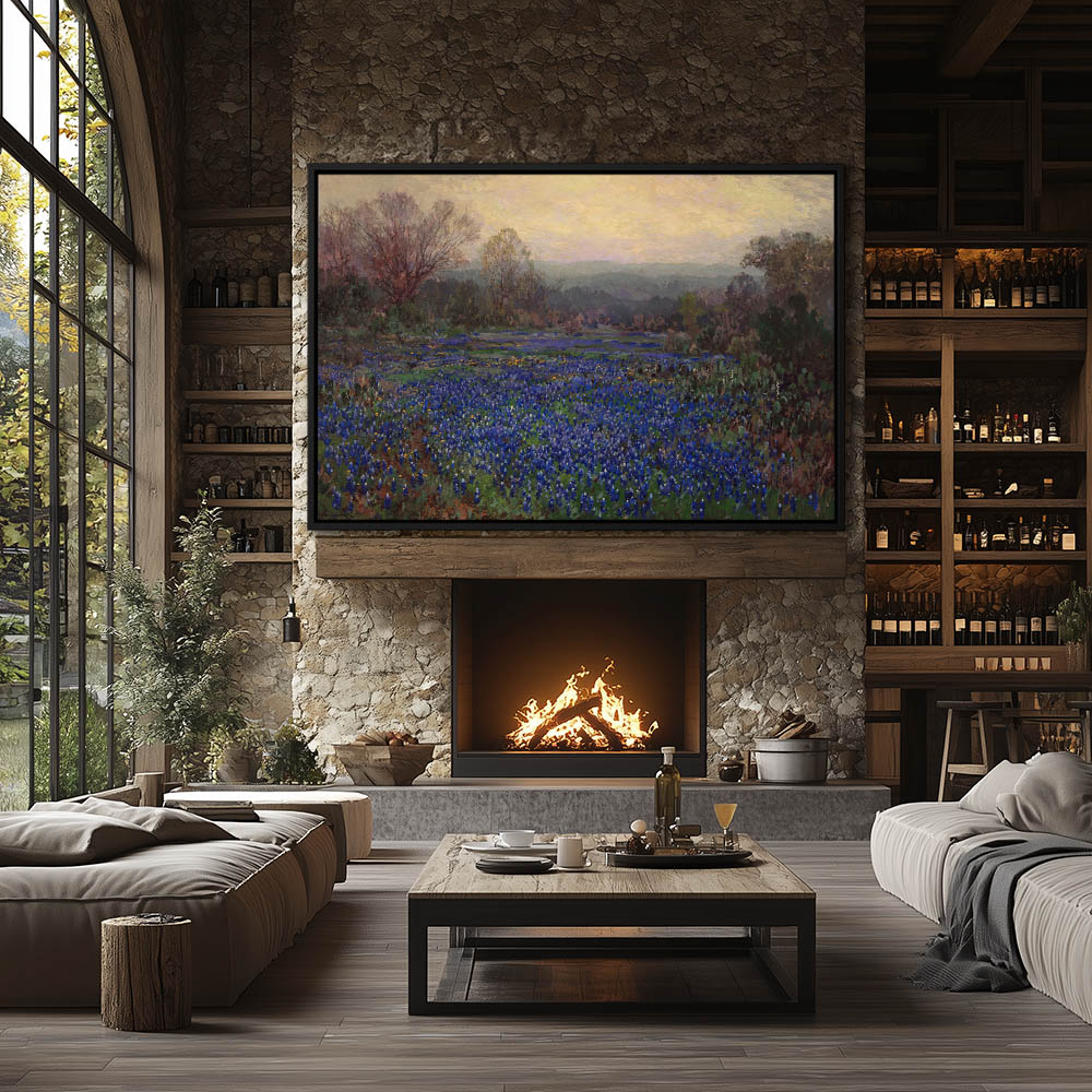 Bluebonnets and Mesquite trees
