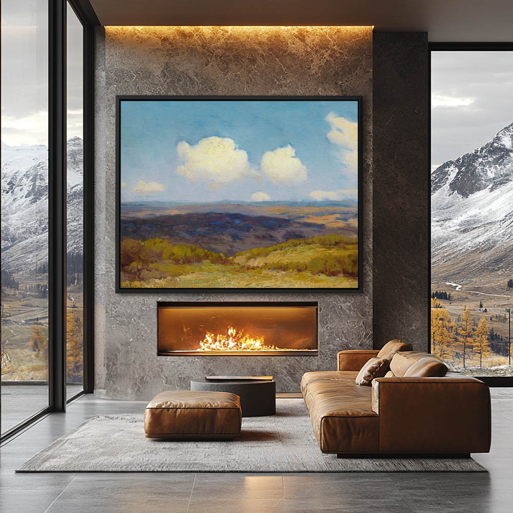 Vast hill country landscape with cloud cover throwing shadows below