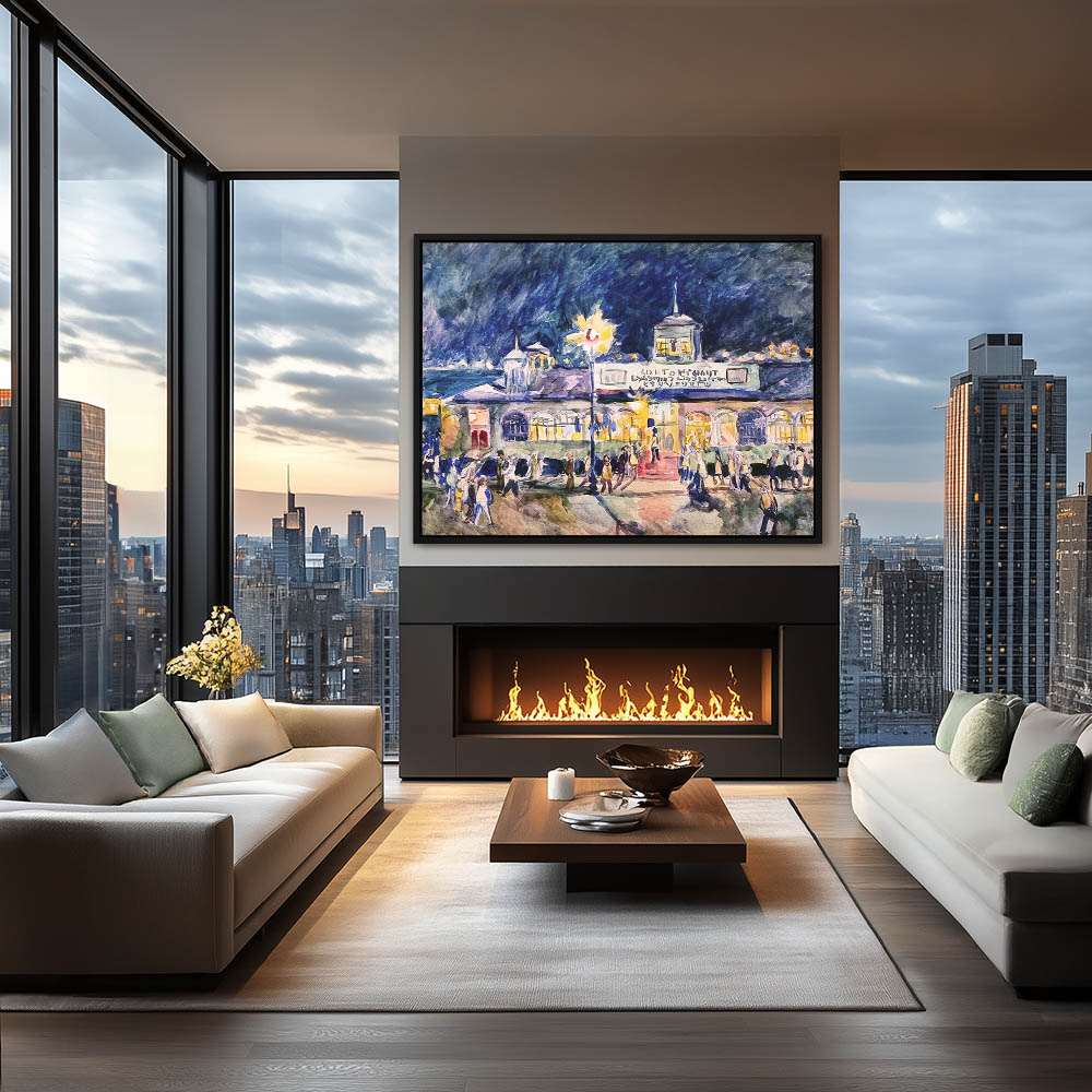 Abstract Landscape Painting of a Pier at Night in Sukhumi