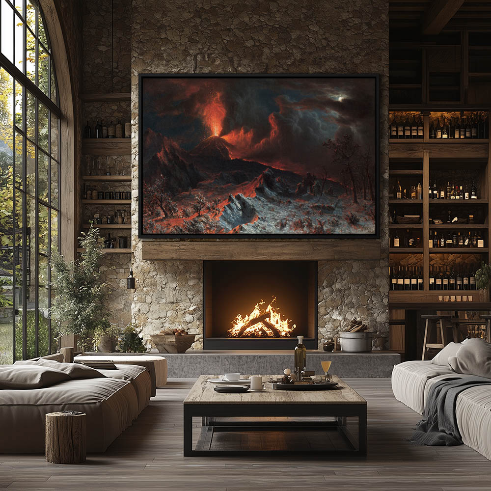 From $29.97Erupting volcano seen in the dark of night with a full moon obscured by clouds