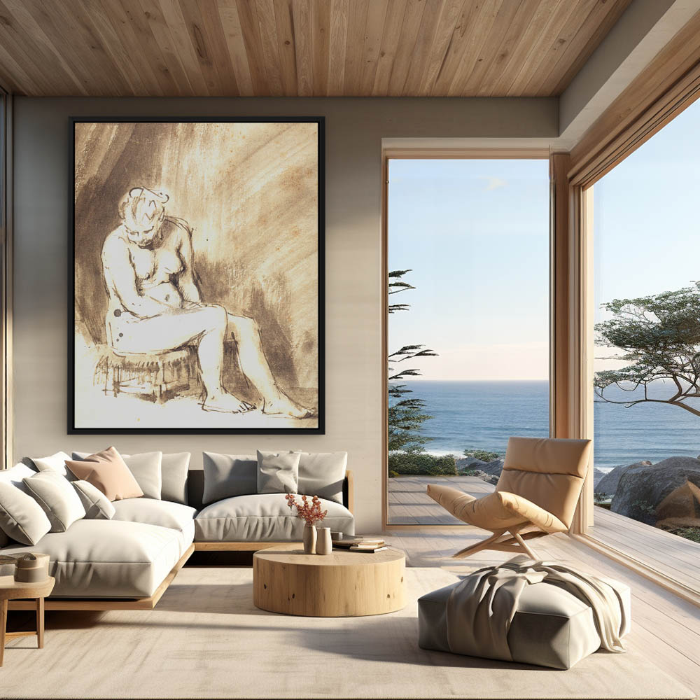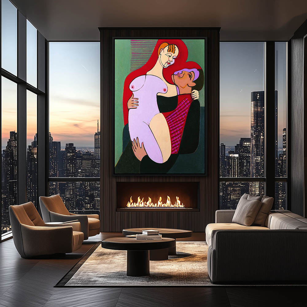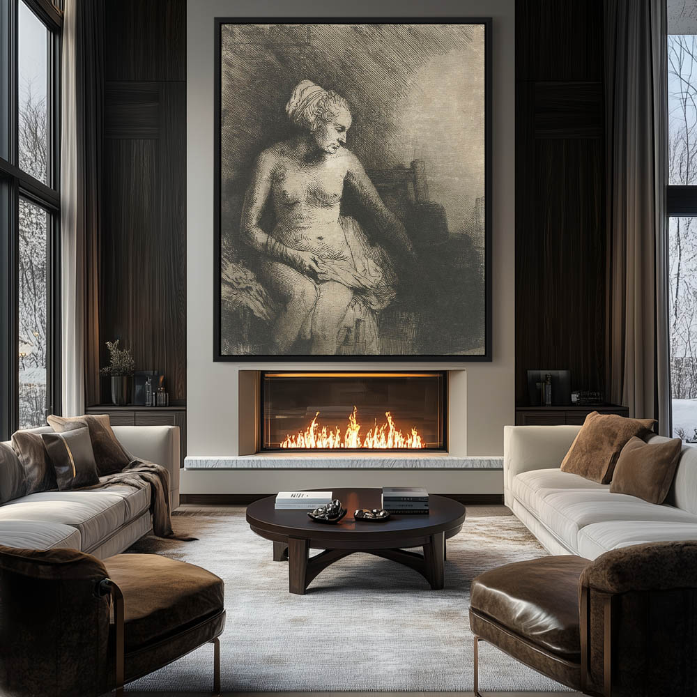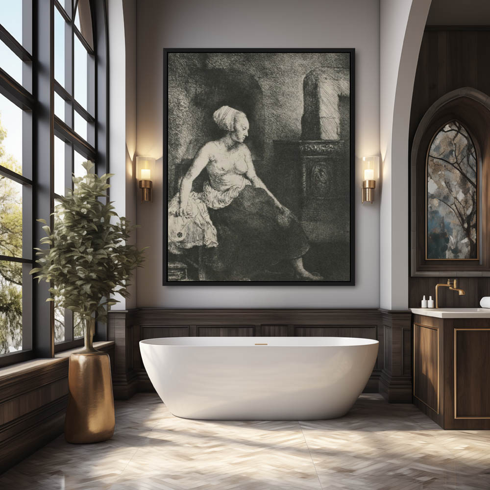 Vintage Figurative Painting of a Partially Nude Woman Holding a Child