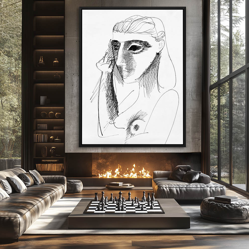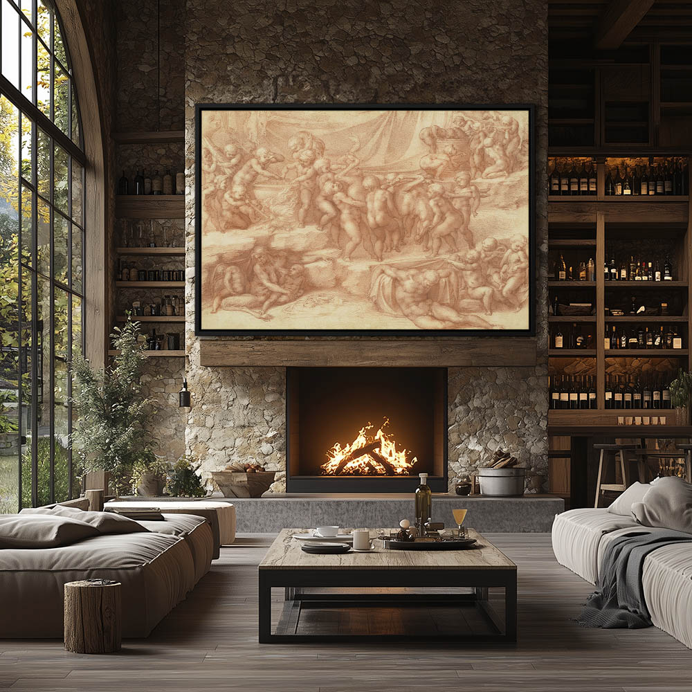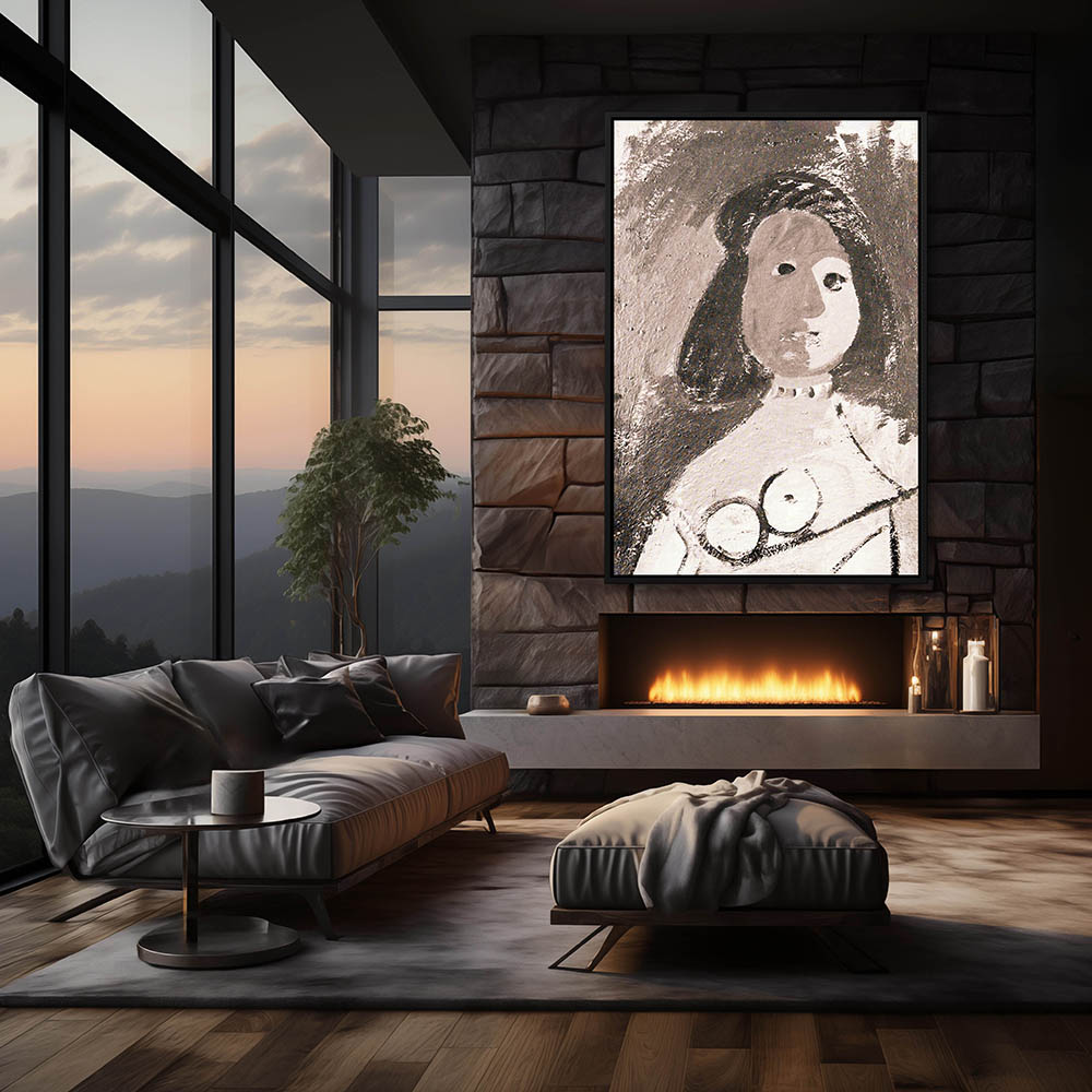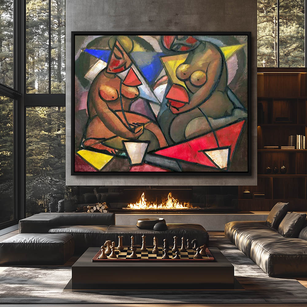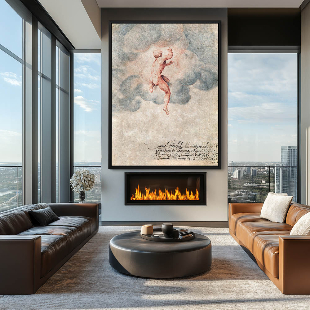 Vintage Figurative Painting of a Partially Nude Woman Holding a Child