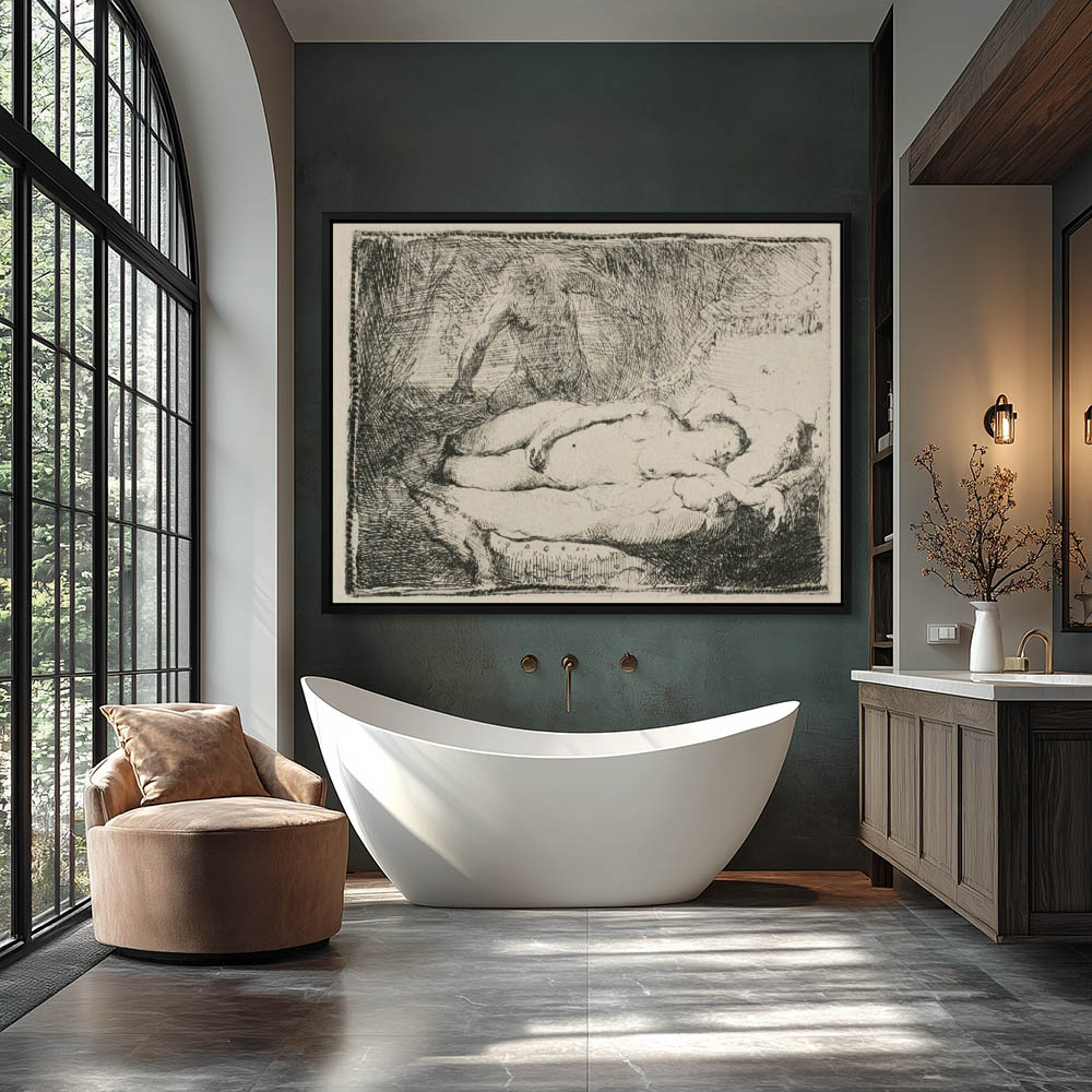 From $31.97Vintage Figurative Landscape Painting of the Nude Eurydice bitten by a Snake while Picking Flowers