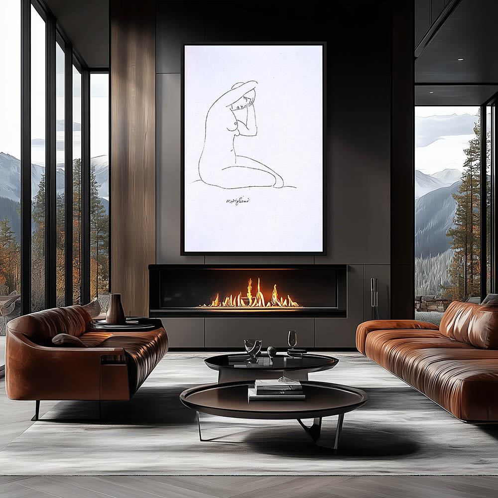 Abstract Figurative Portrait of a Half Nude Woman Sitting