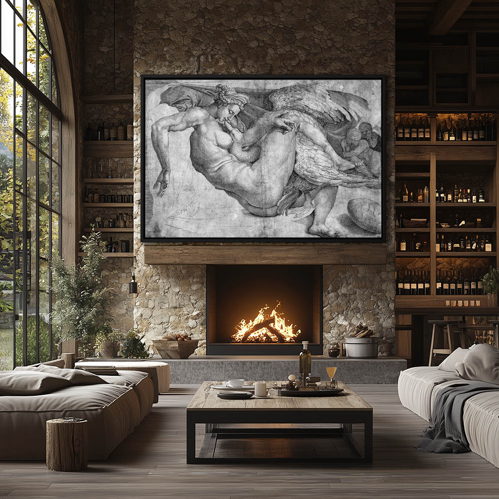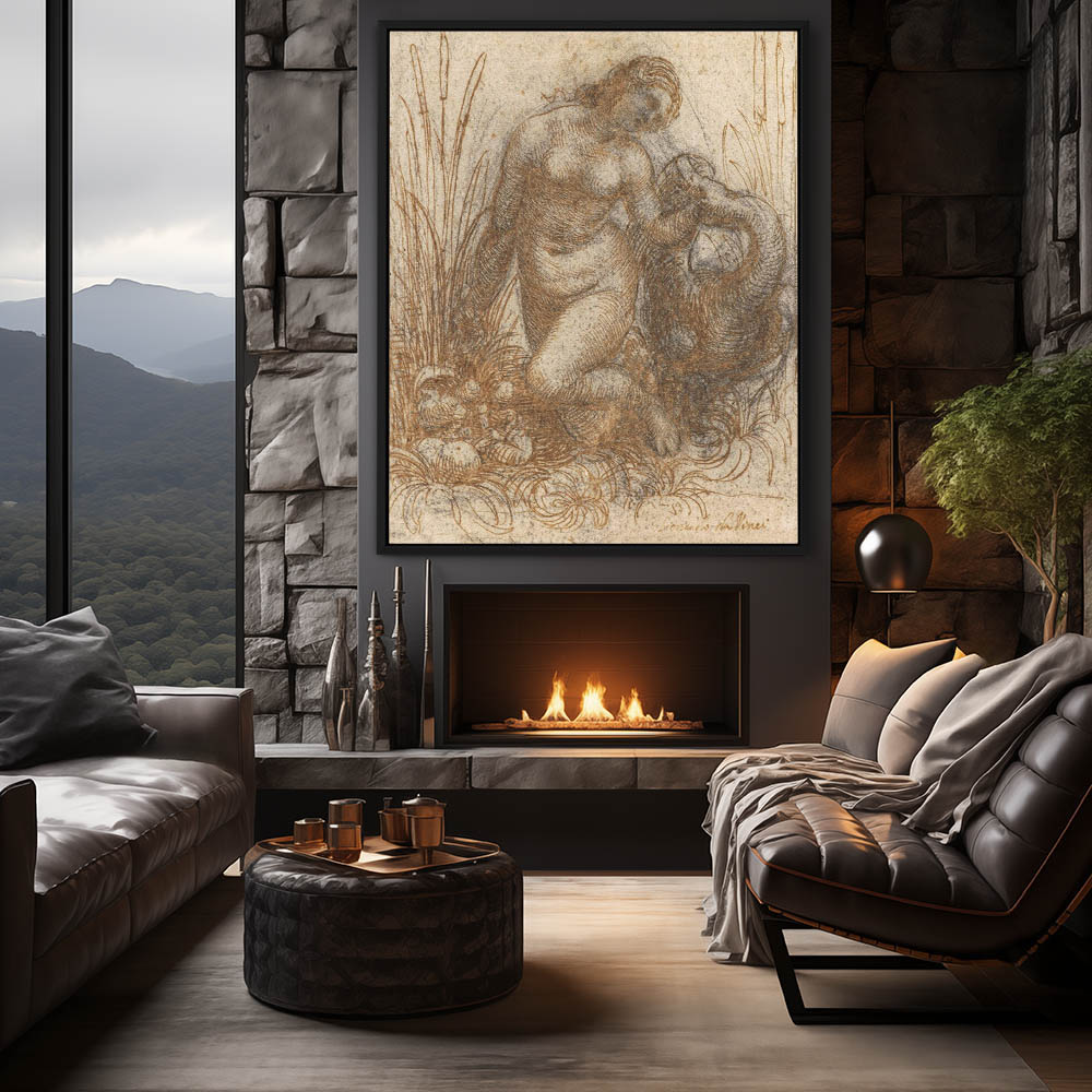 Vintage Nude Mythical Drawing of Leda and the Swan