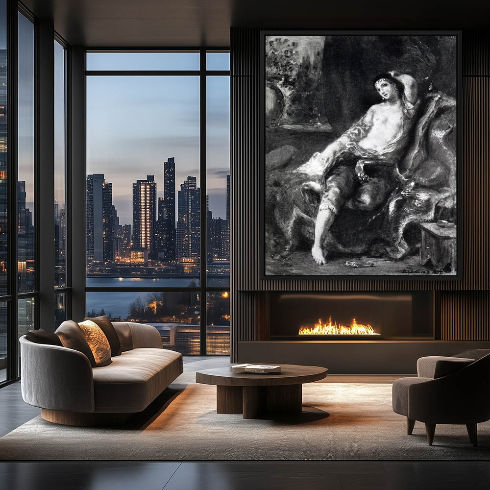 Vintage Figurative Painting of a Nude Woman Resting in the Blossoms