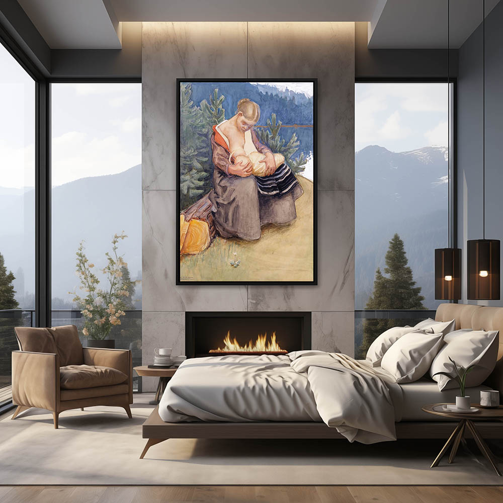 Figurative Painting of a Mother Breast Feeding Her Infant