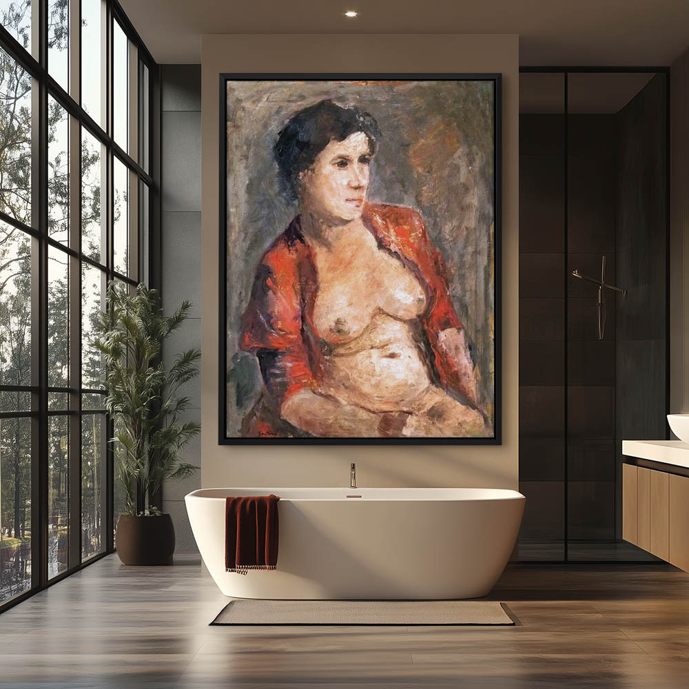 Abstract Nude of a Seated Woman with an Open Red Shirt