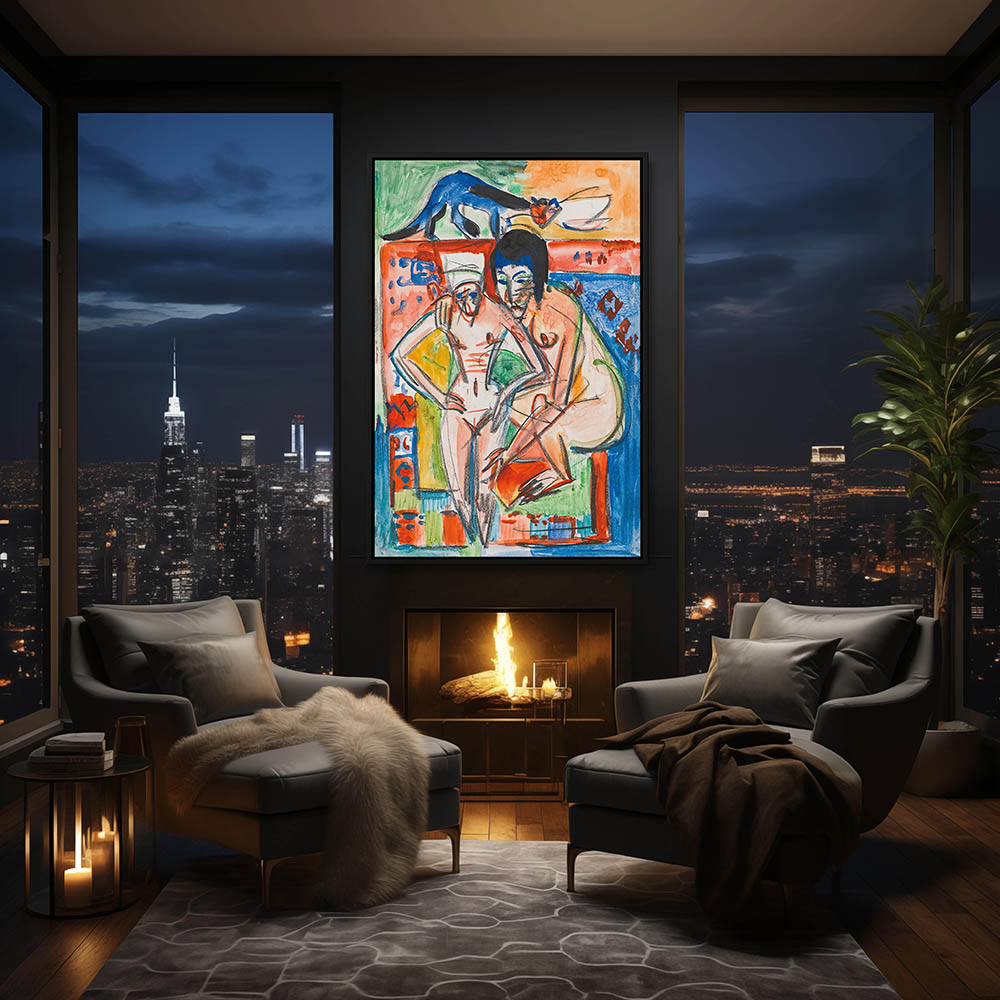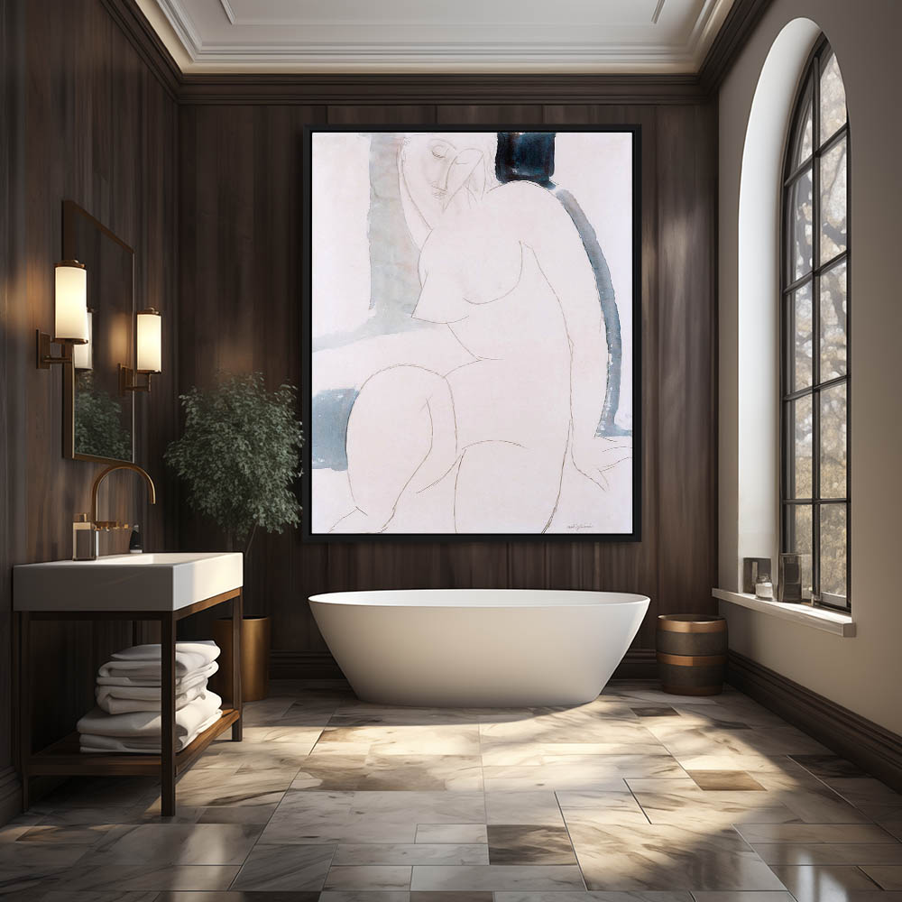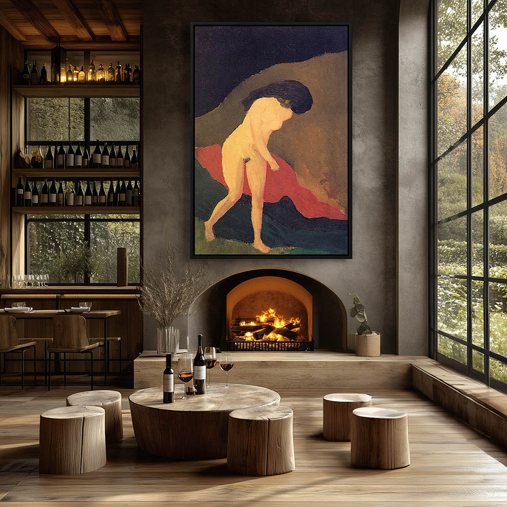 From $29.97Abstract Figurative Painting of a Nude Woman Adjusting Her Garter Belt on Red Background