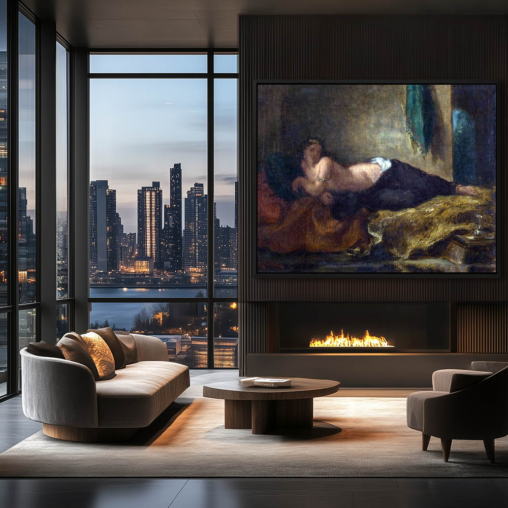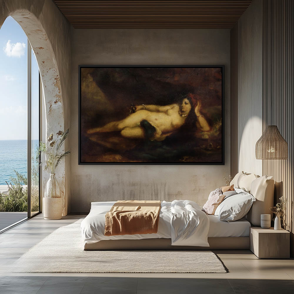 Vintage Figurative Painting of a Nude Woman Laying on a Bed