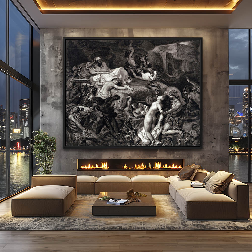 Nude, adulterous lovers Paolo and Francesca de Rimini with their moral wounds, draped in a blue fabric