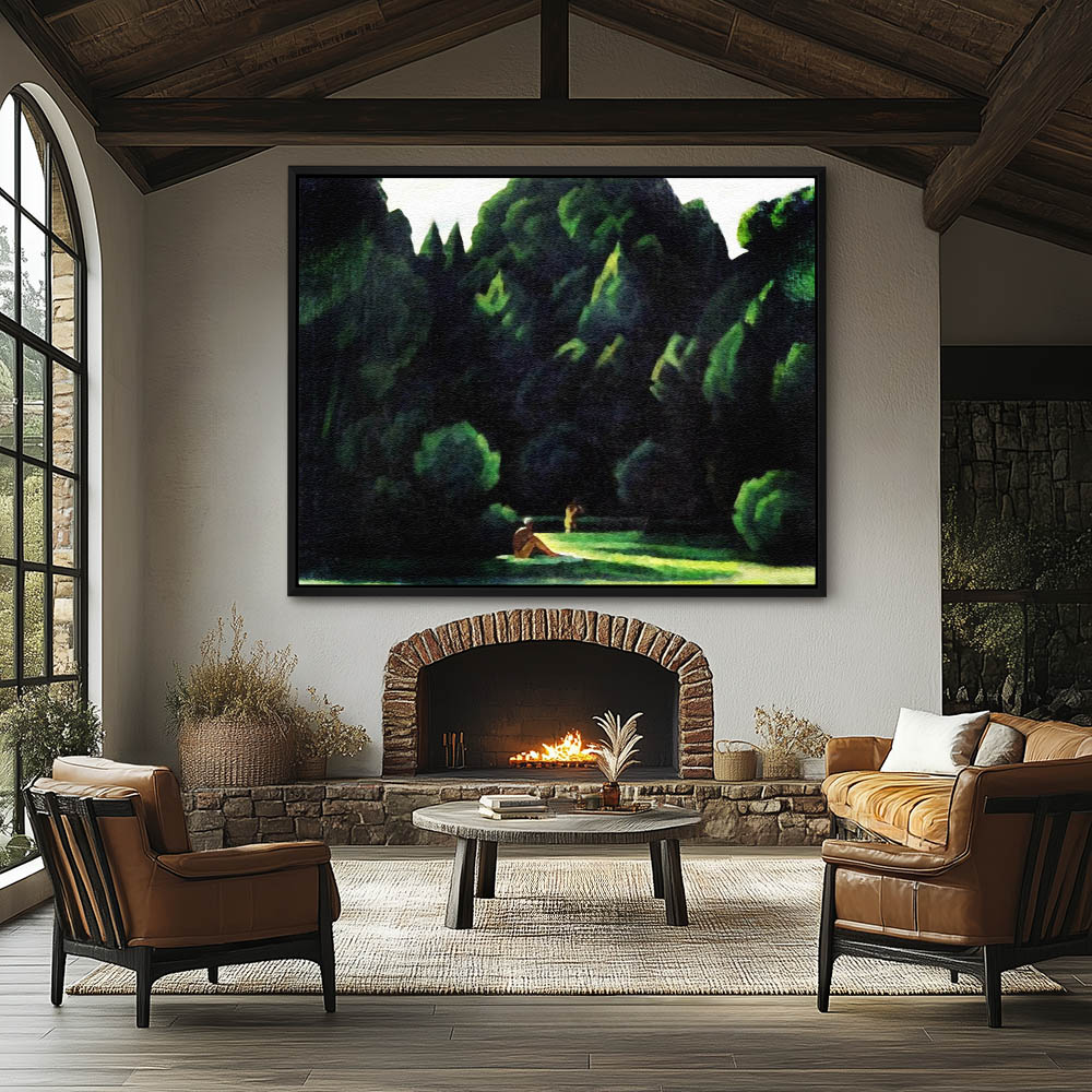 Abstract Figurative Painting of Two Nude Women Bathers with Trees in the Park