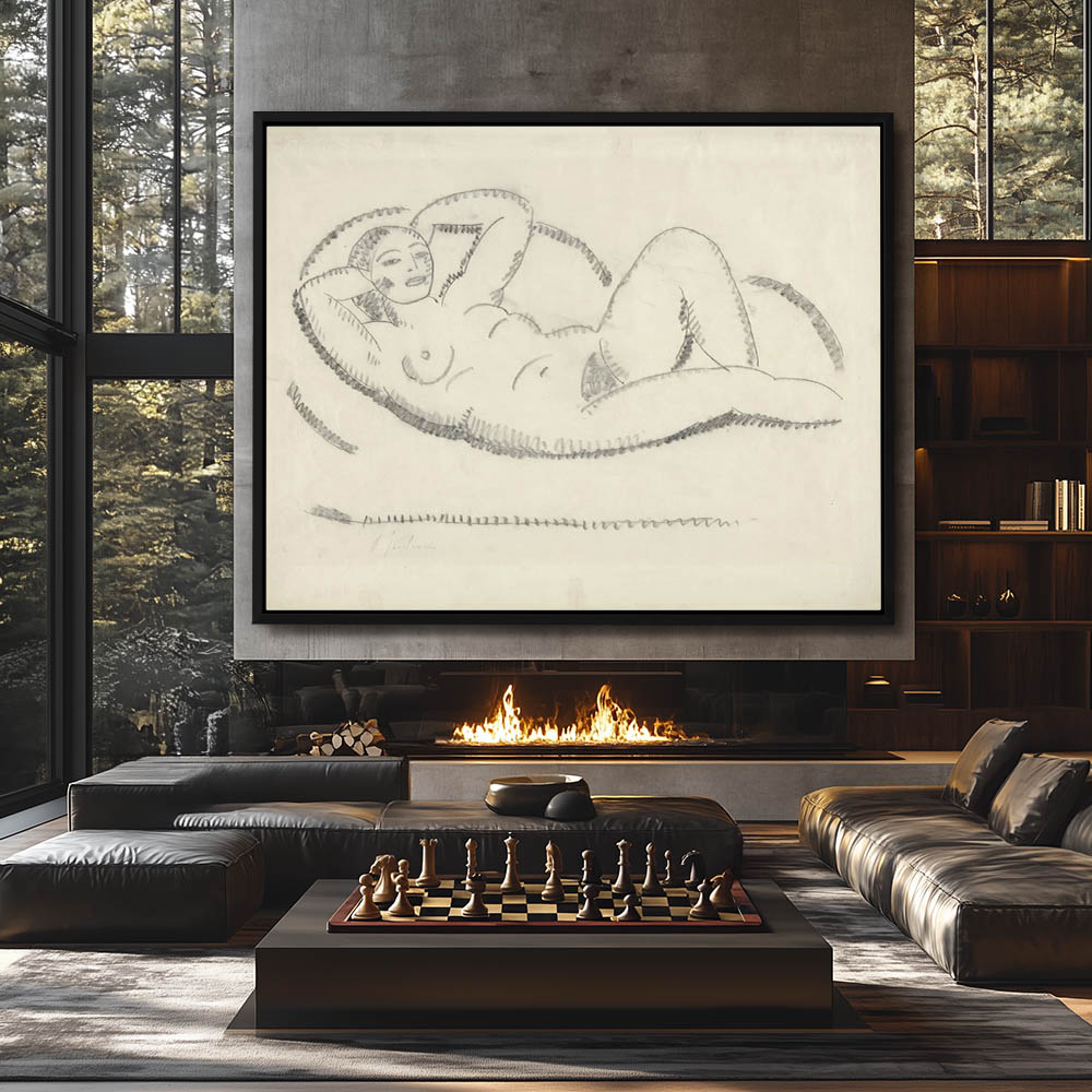 Figurative Drawing of a Nude Woman Reclined