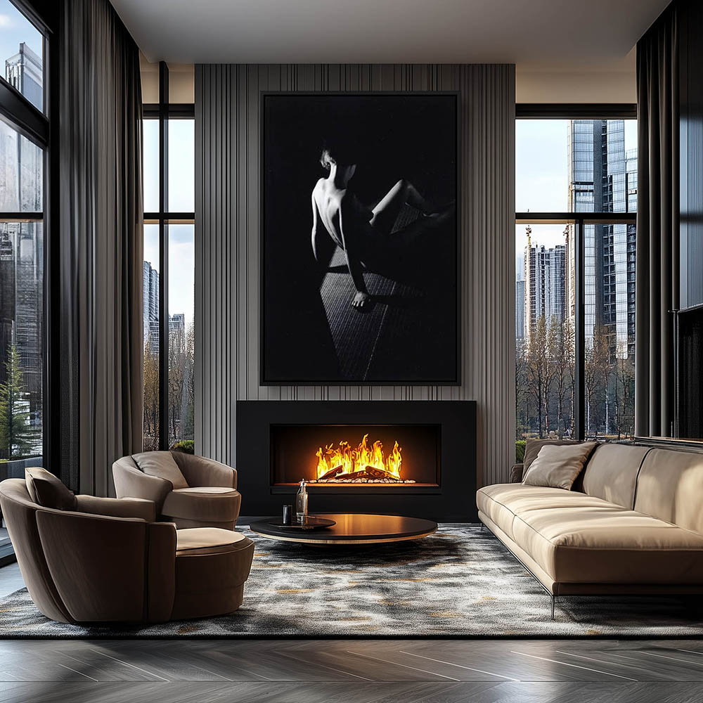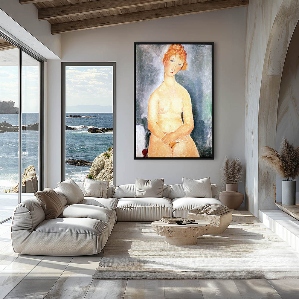 Abstract Figurative Painting of a Seated Nude Woman with Red Hair