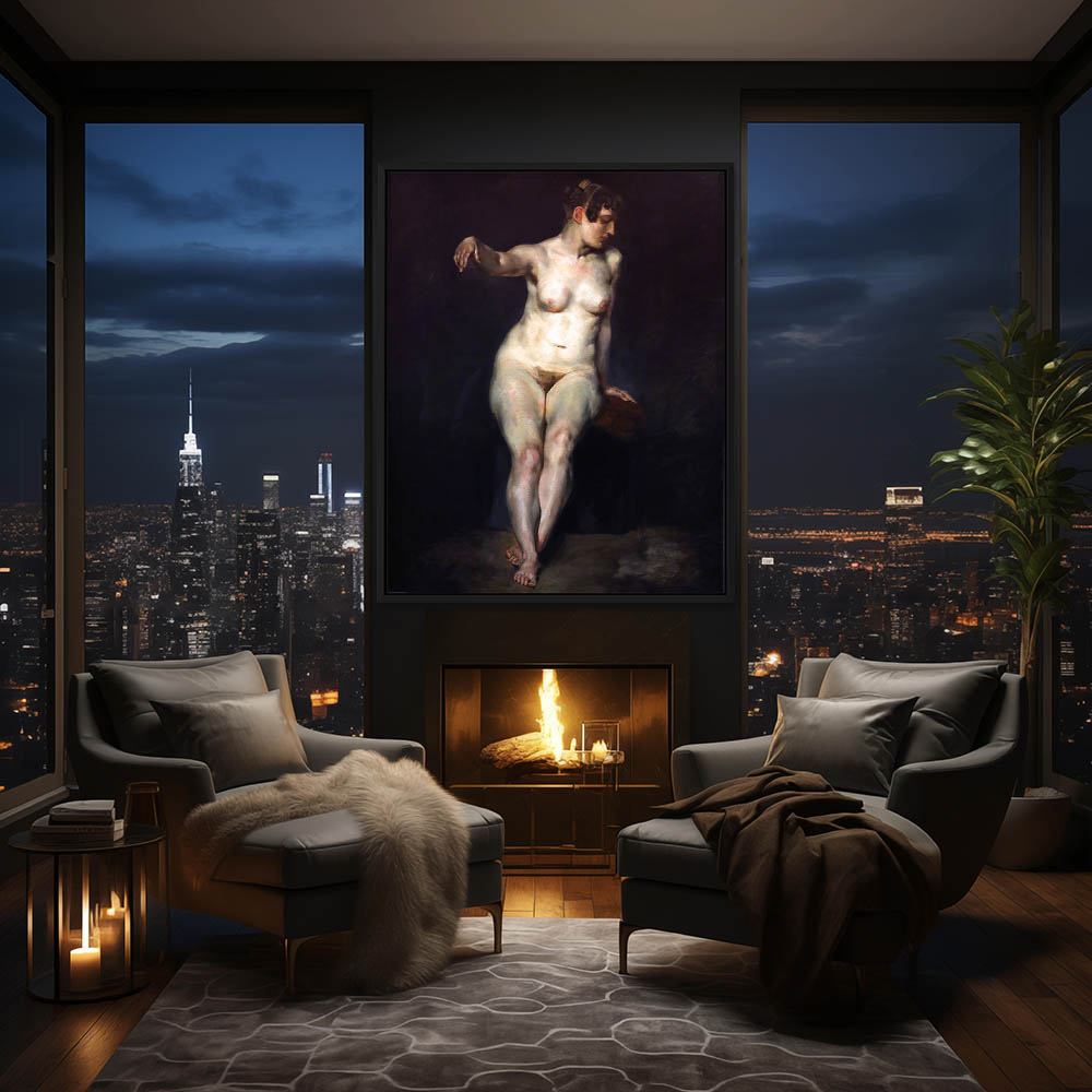 Abstract Figurative Woman Half Nude Sitting in a Chair