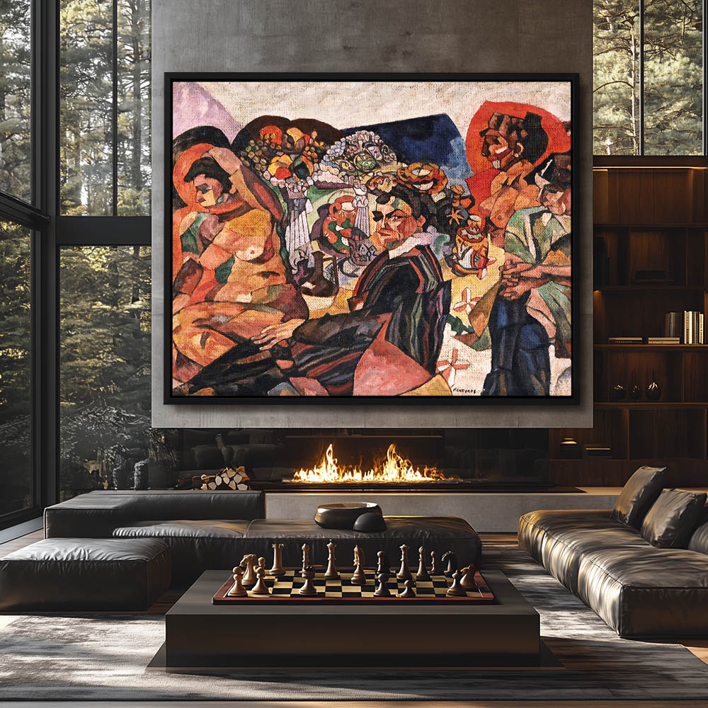 Vintage Figurative Painting of a Shepherd and a Nude Nymph