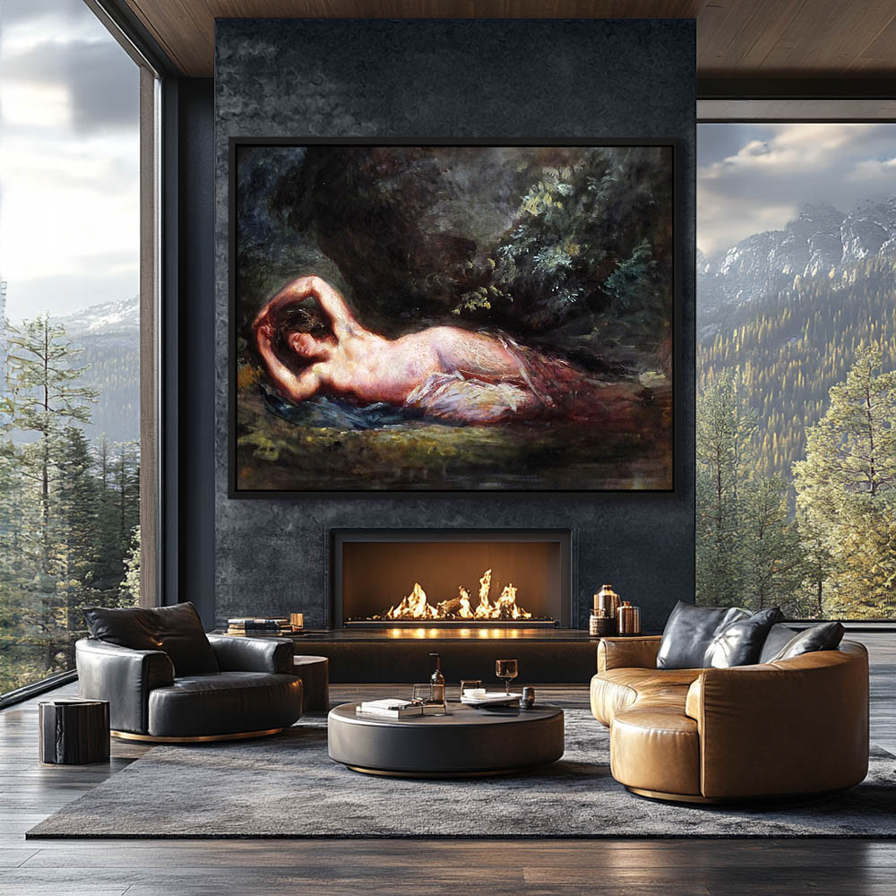 Vintage Figurative Painting of the Sleeping Nude Bacchante