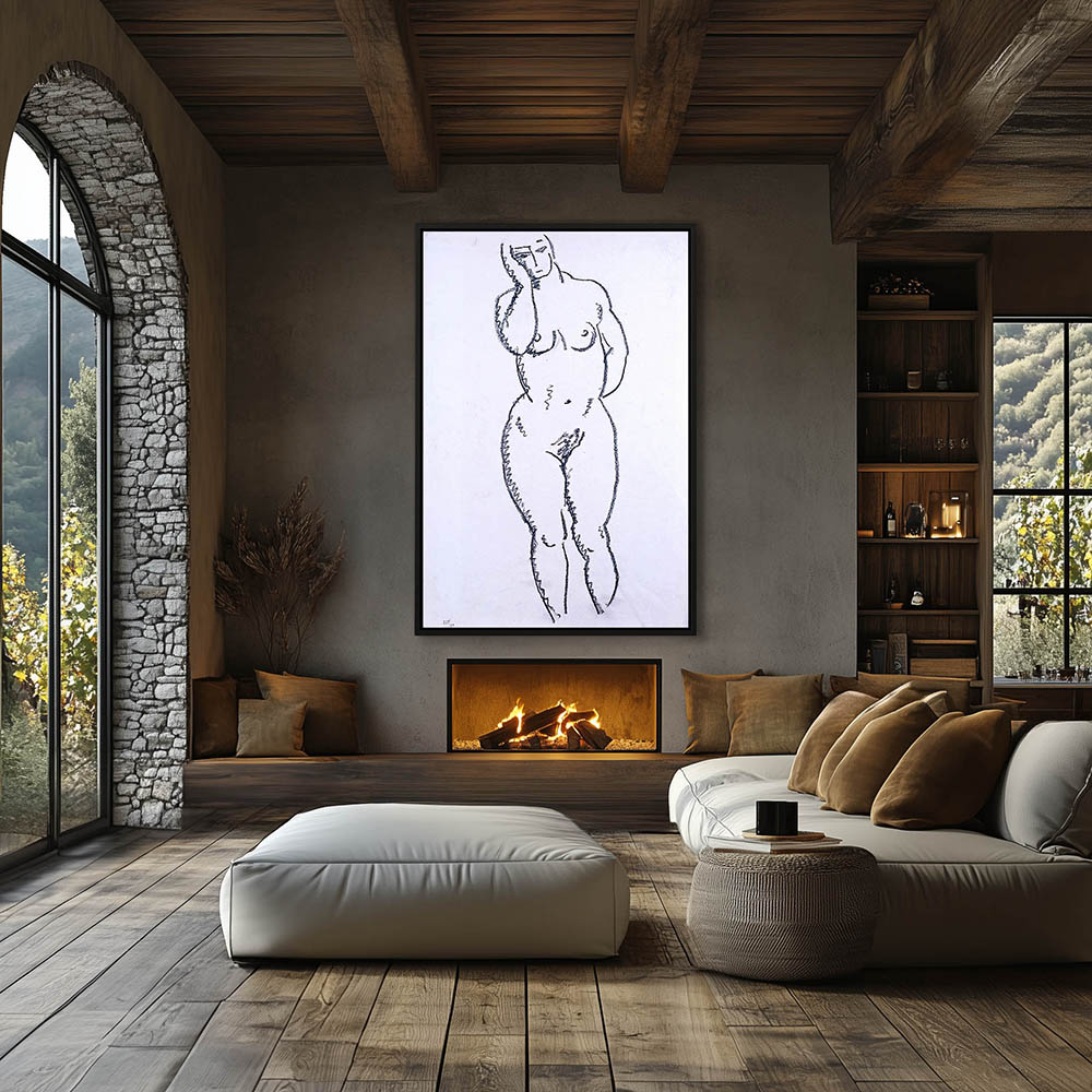 Abstract Figurative Drawing of a Standing Nude Female