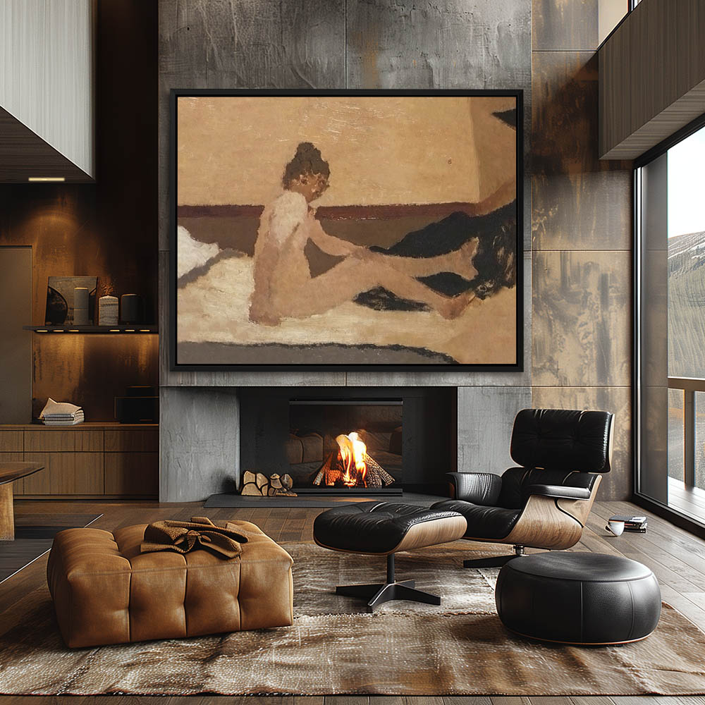 Abstract nude sitting on a blanket