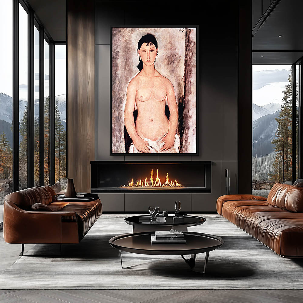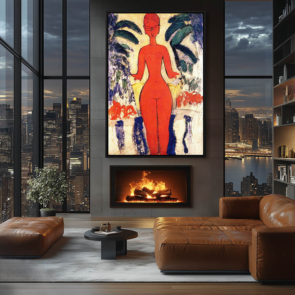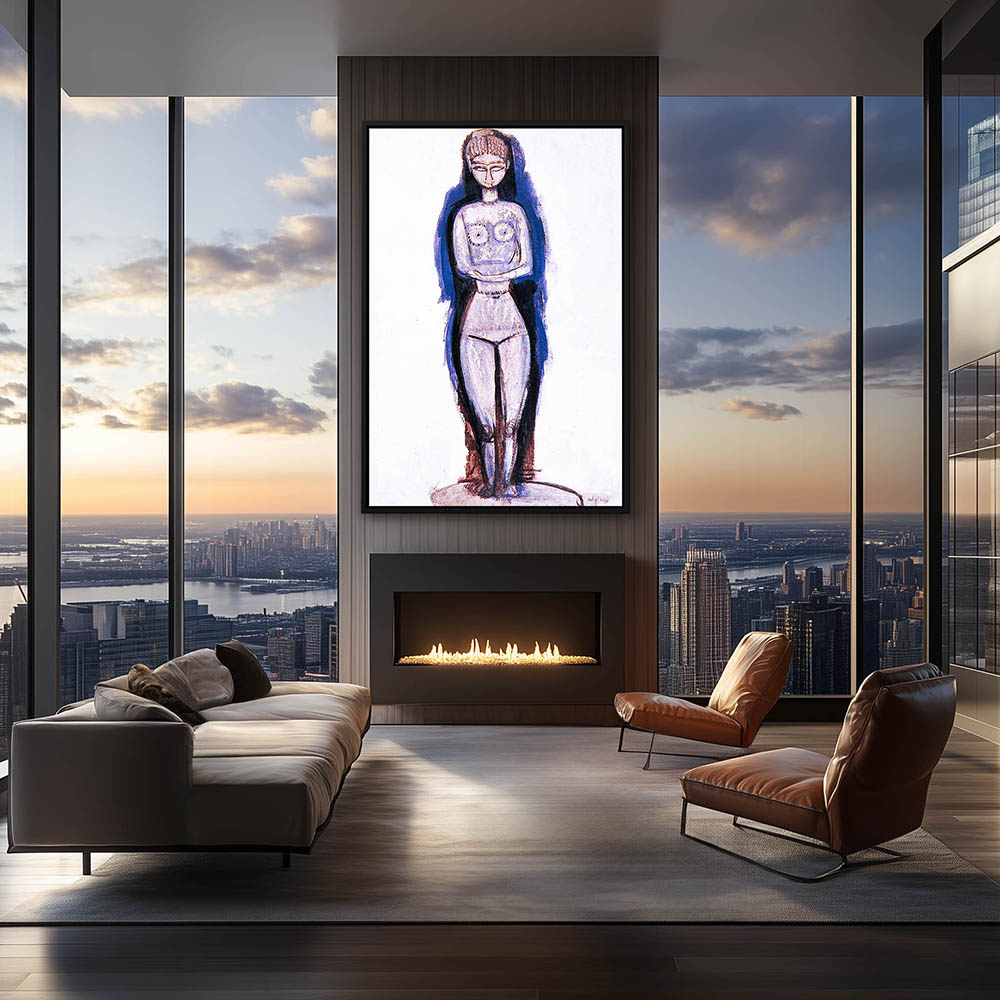 Abstract Figurative Painting of a Half Nude Woman Standing