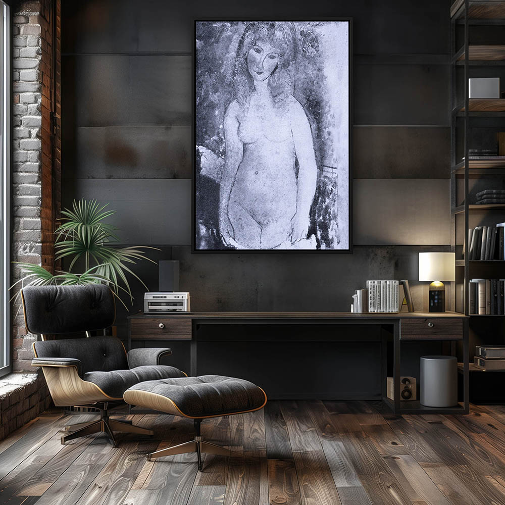 Abstract Figurative Painting of a Standing Nude in Black and White
