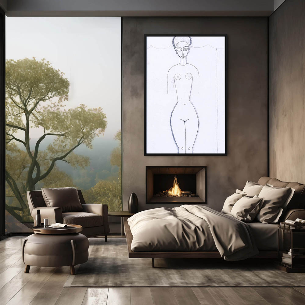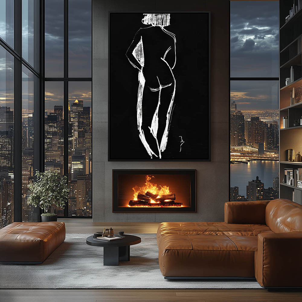 Abstract Figurative Drawing of a Standing Nude Woman in Black and White
