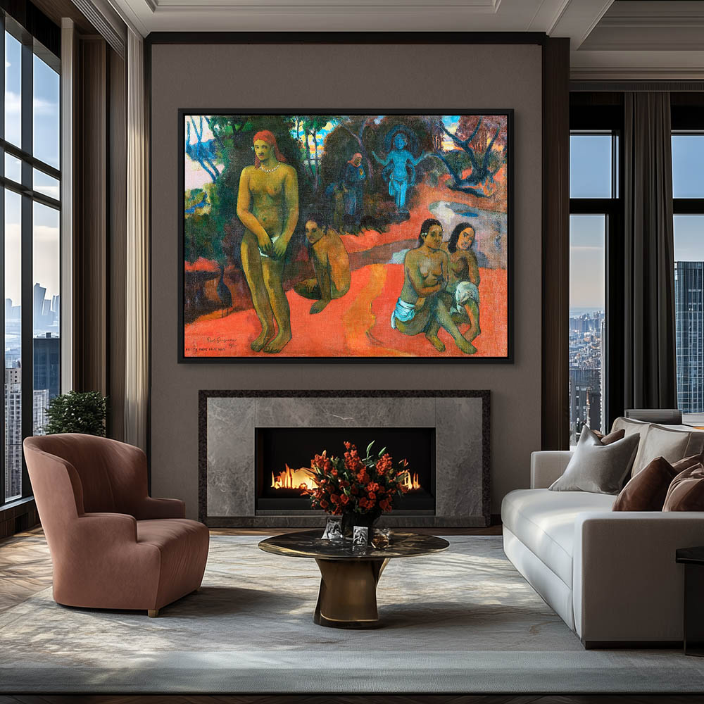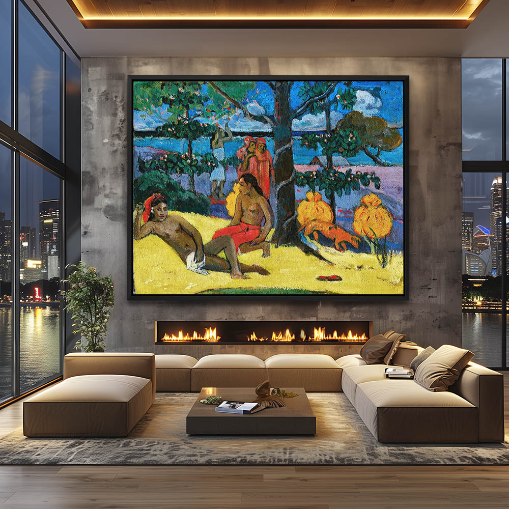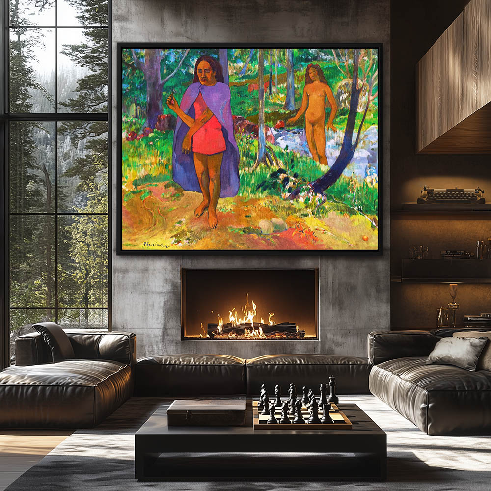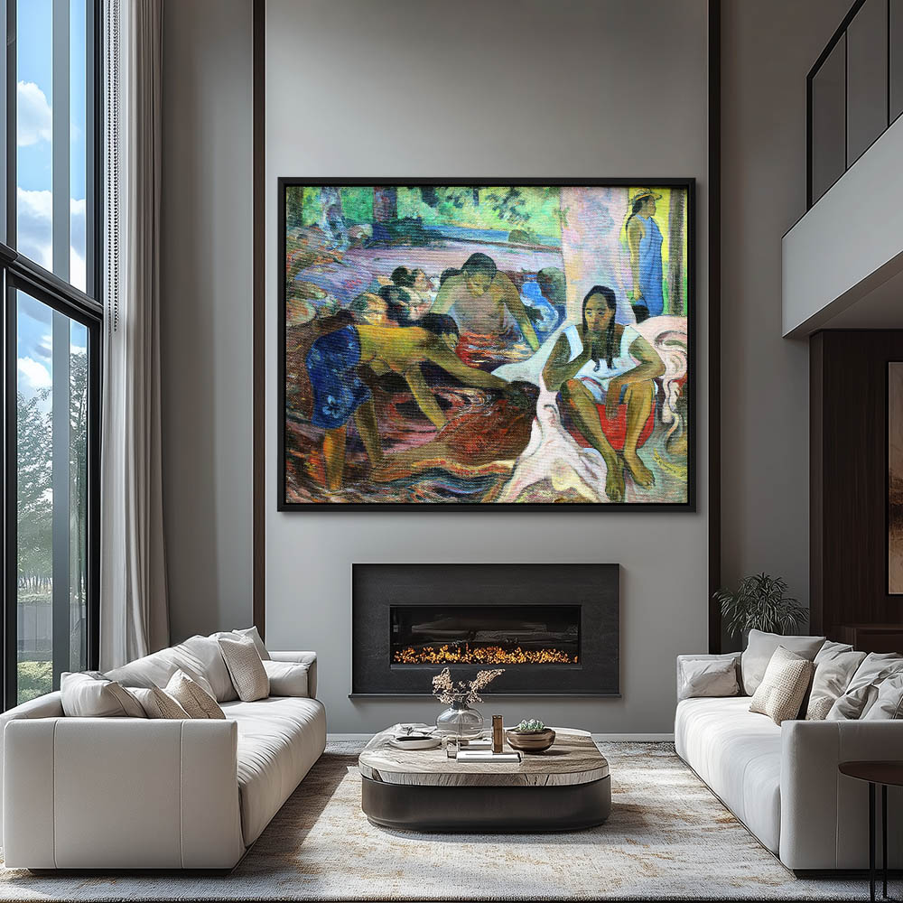 Vintage Figurative Painting of Tahitian Fisherwomen with one Being Topless
