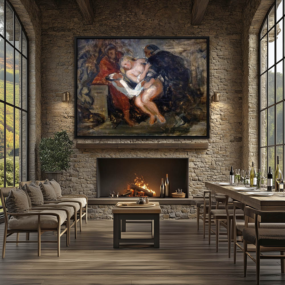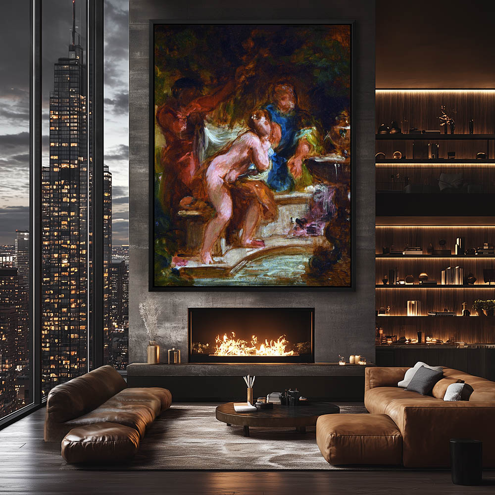 Vintage Figurative Painting of the Nude Susannah and the Elders