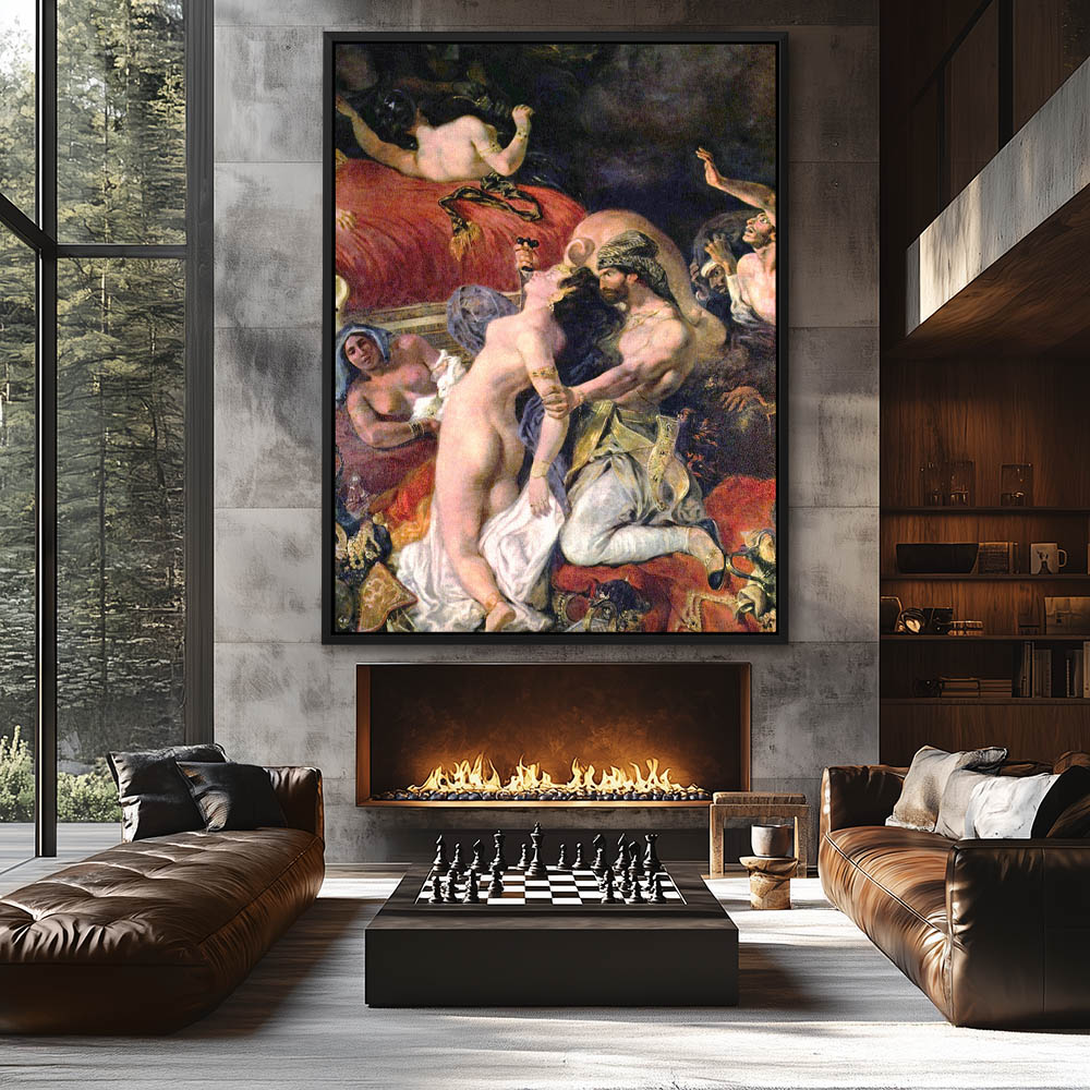 Vintage, Figurative Painting with Nude Figures Morning the Death of Sardanapalus