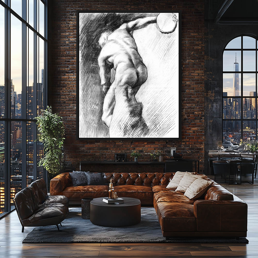 Figurative Drawing of an Olympic Discus Thrower