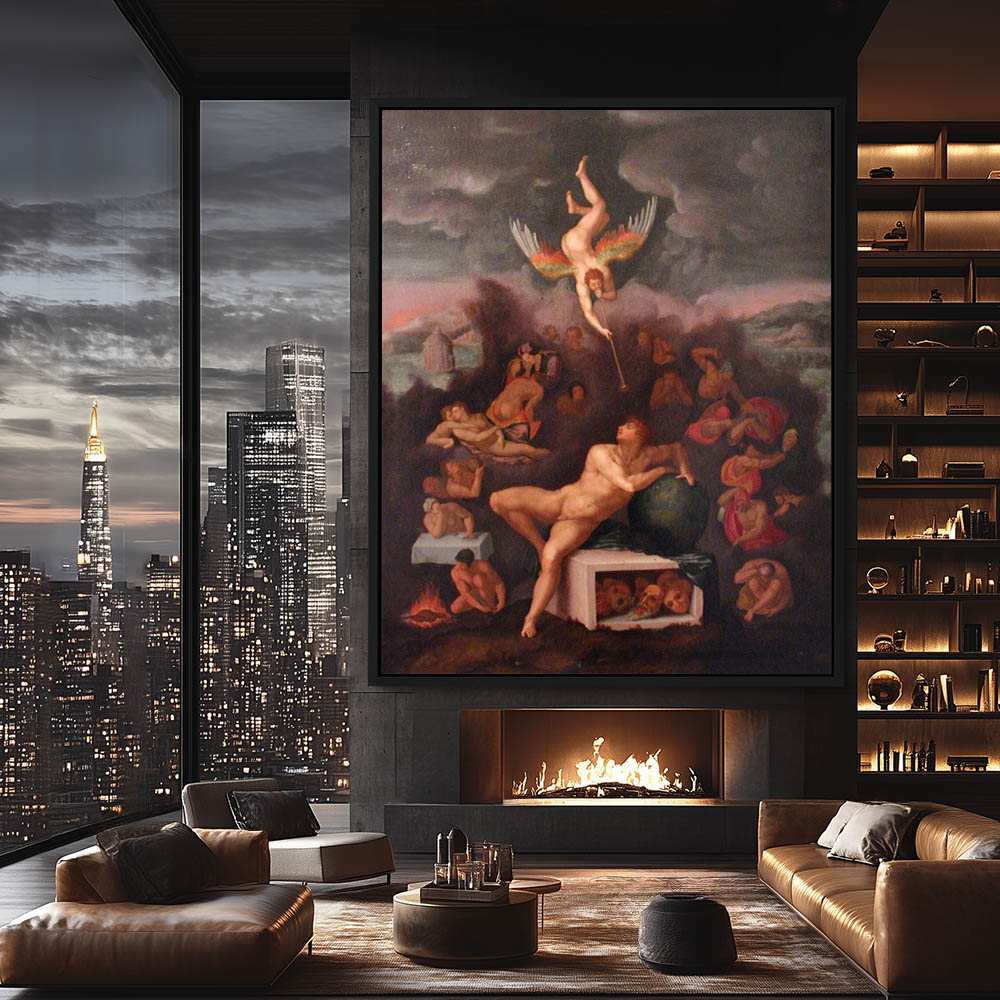 Vintage Religious Nude Painting of the Great Flood