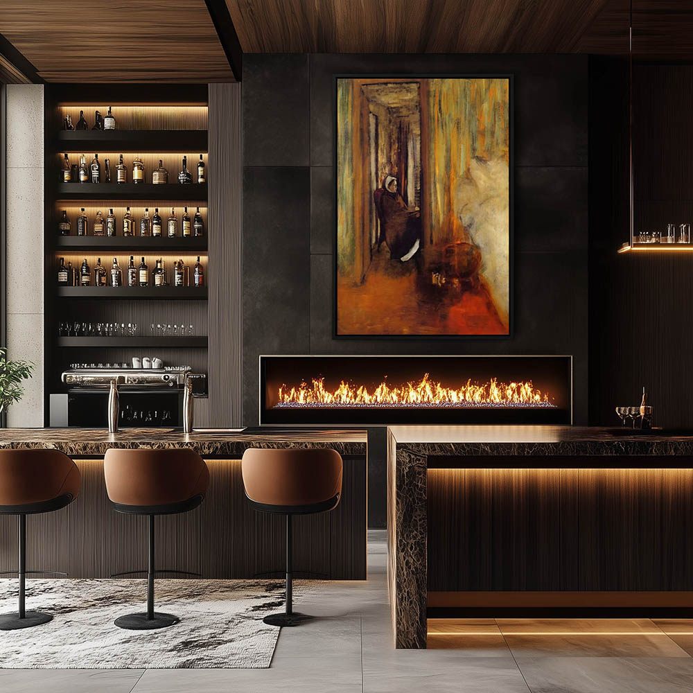 Nurse sitting in a chair in a hallway outside a bedroom door