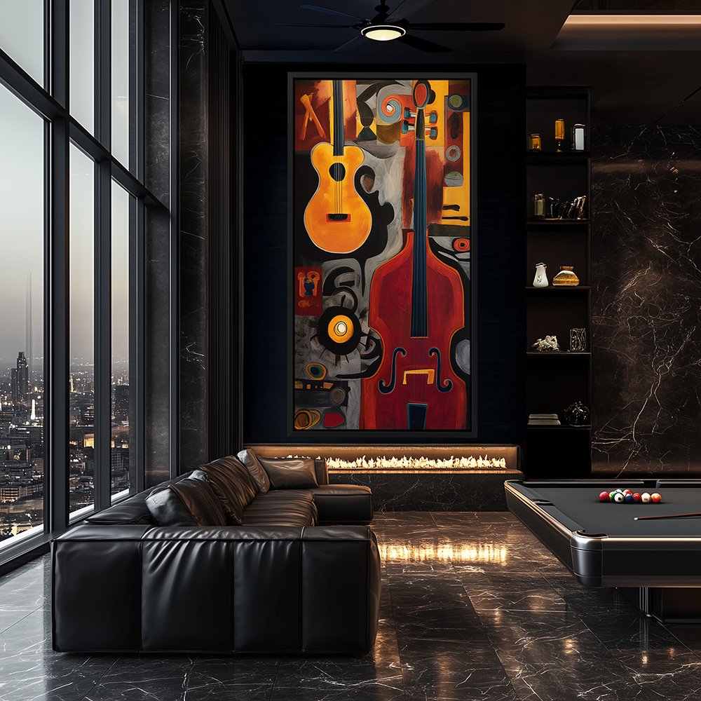 Bring rhythm and energy to your space with this vibrant contemporary painting of a blues band — an explosion of color and movement perfect for any lounge or music lover’s décor.