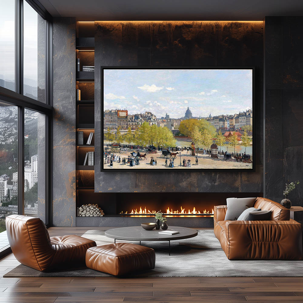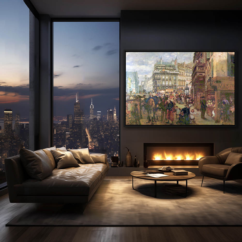 Vintage City Scape Painting with Figures in the Streets of Paris