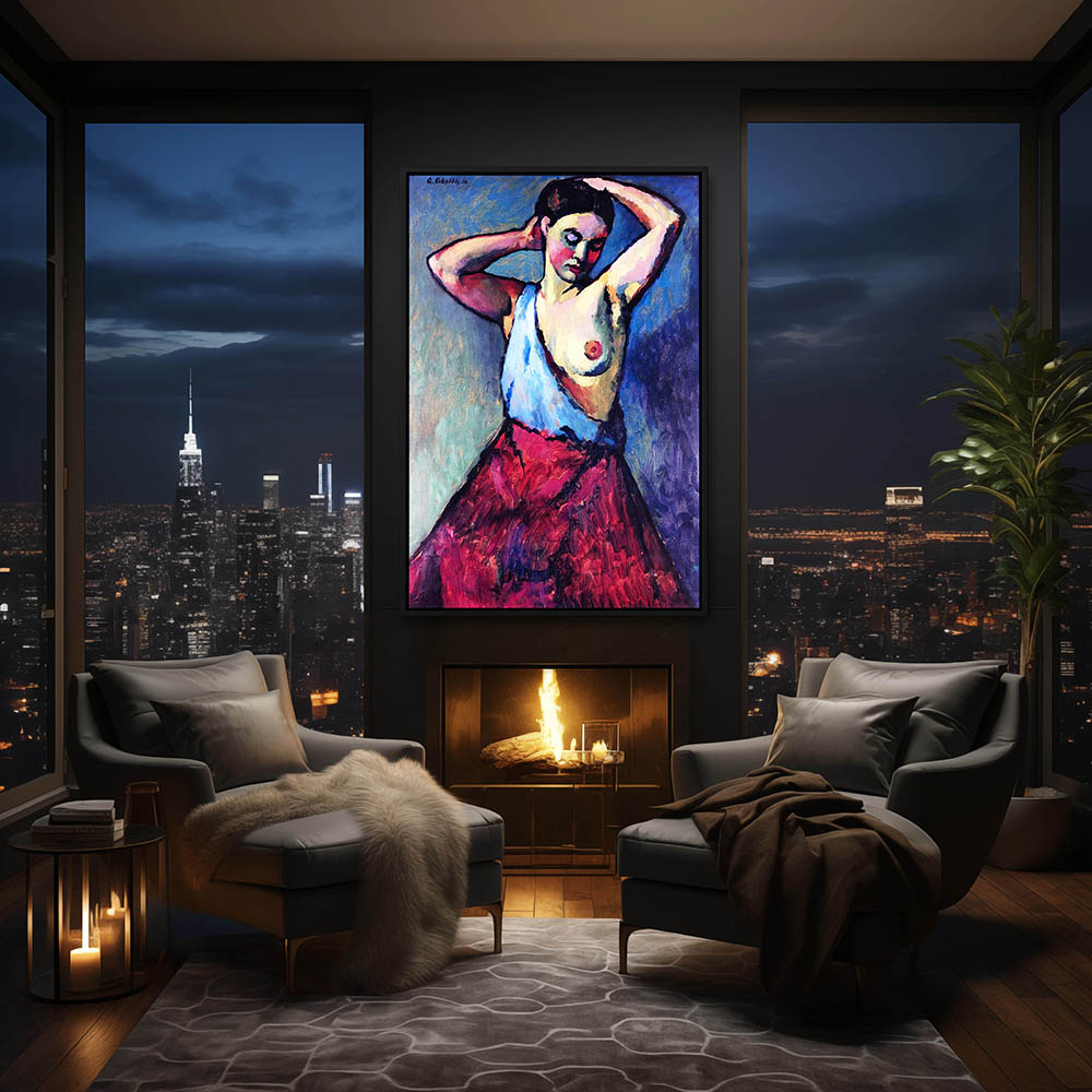 Abstract Figurative Painting of a Partially Nude Woman Putting Her Hair Up