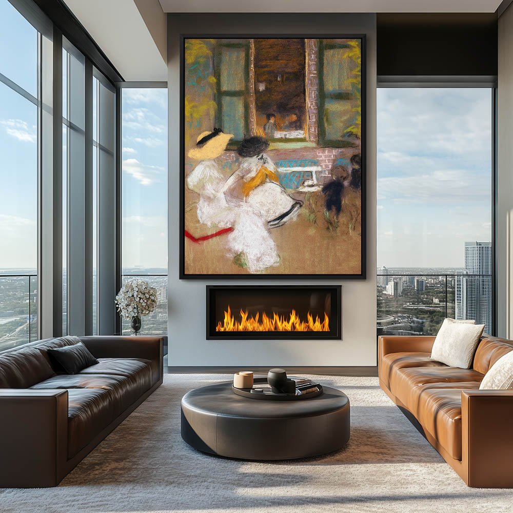 Horse drawn cabs waiting along the sidewalk as people pass by