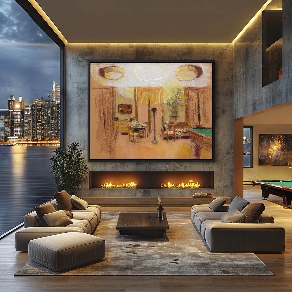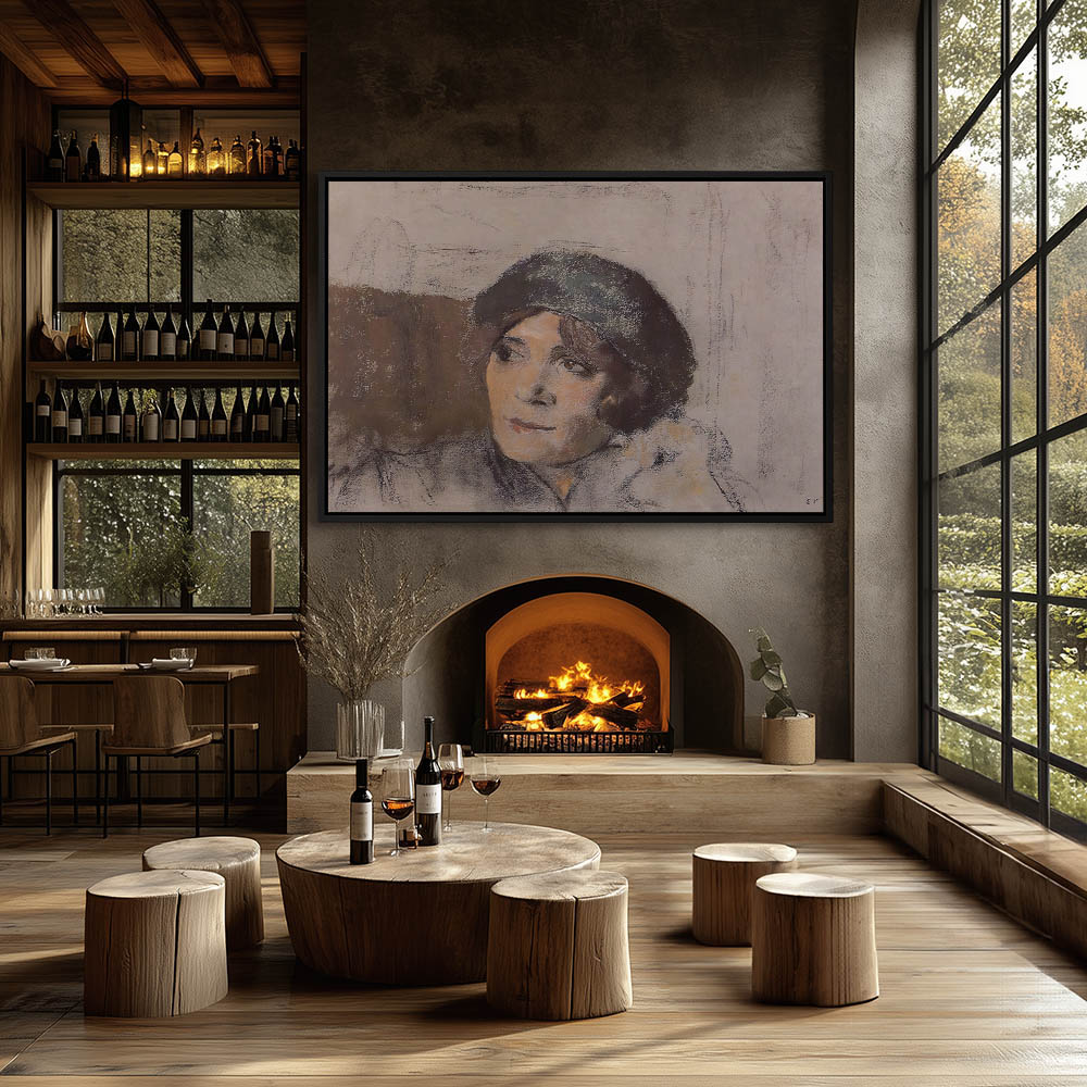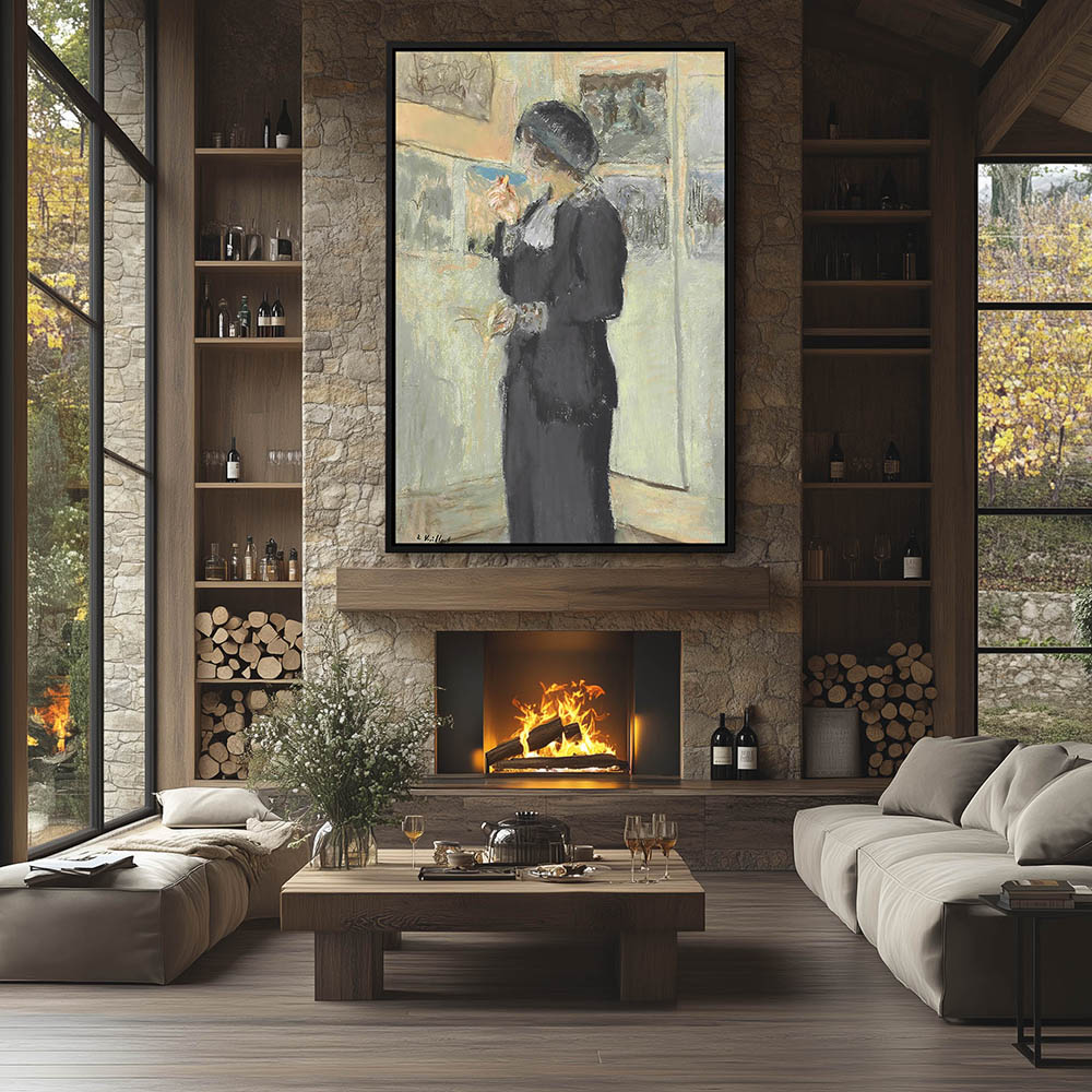 Two women sitting in a large room with a billiards table, large floral arrangement and several windows along the far wall.