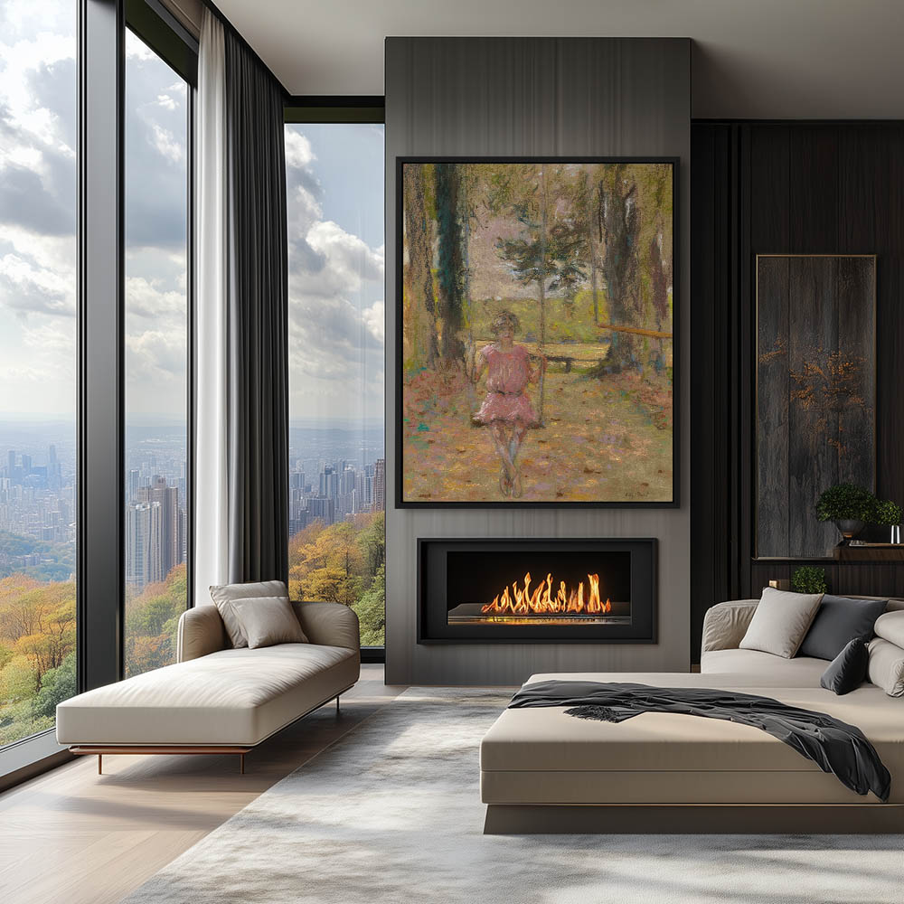 Womam in pink in a garden swing