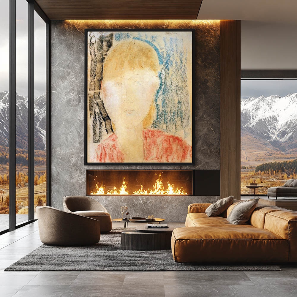Abstract Figurative Portrait Painting of a Womans Head in Red Blouse