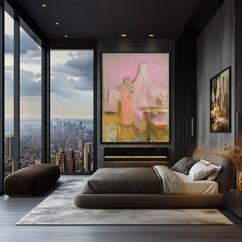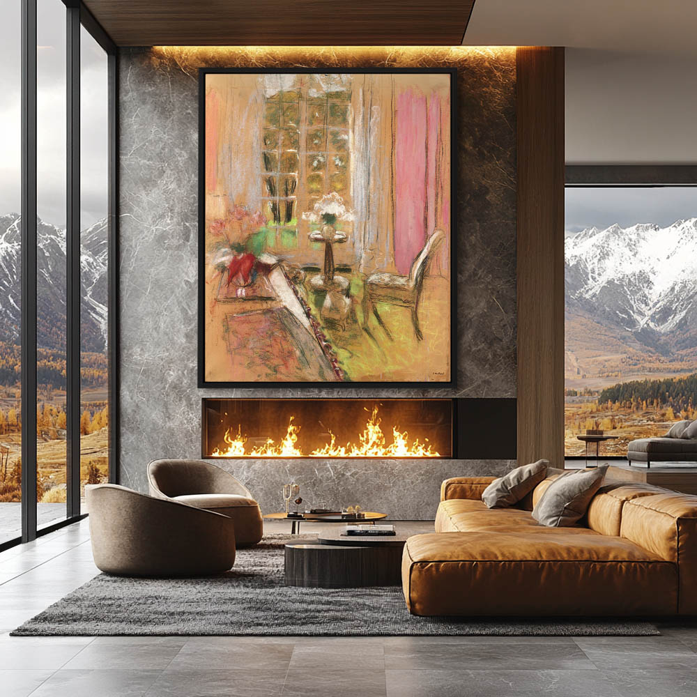 Interior od a pink room with pink and white flower arrangements