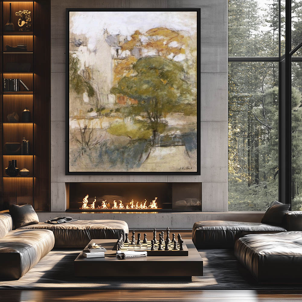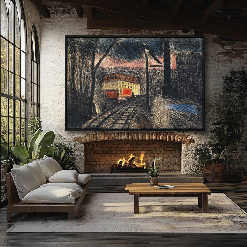 Abstract Landscape Drawing with Railroad Tracks in Black