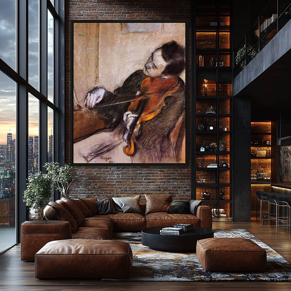 A younger woman handing a note to an older seated woman in a warmly lit yellow toned room; walls covered in paintings.