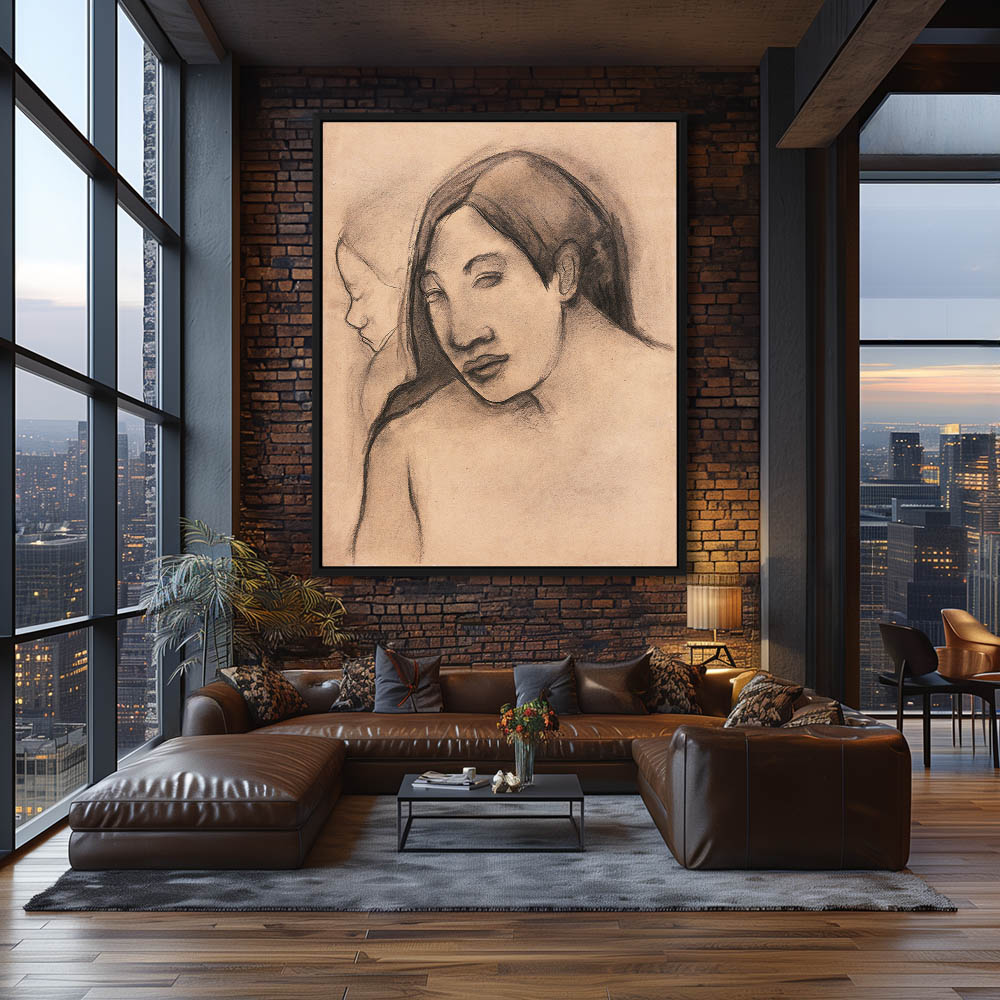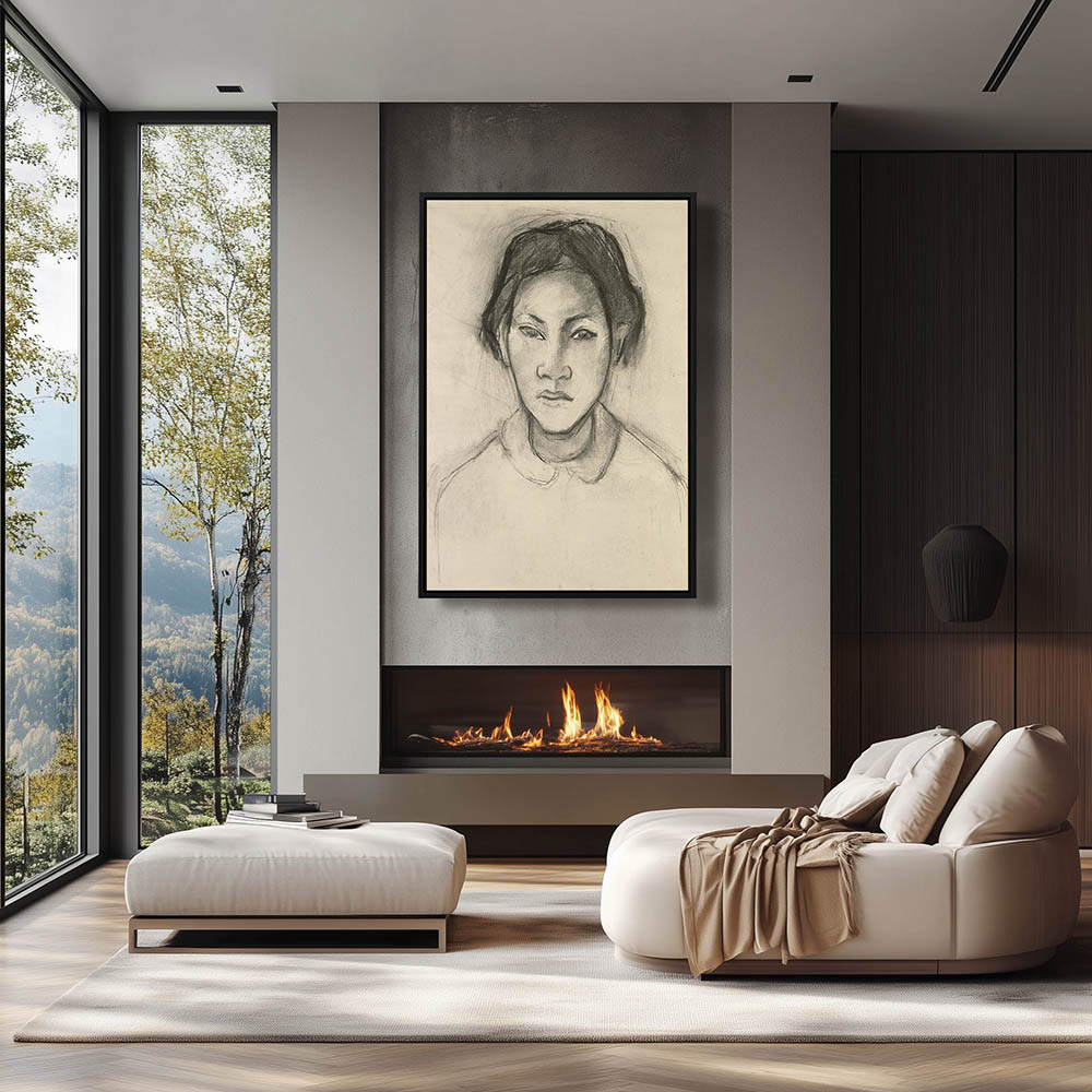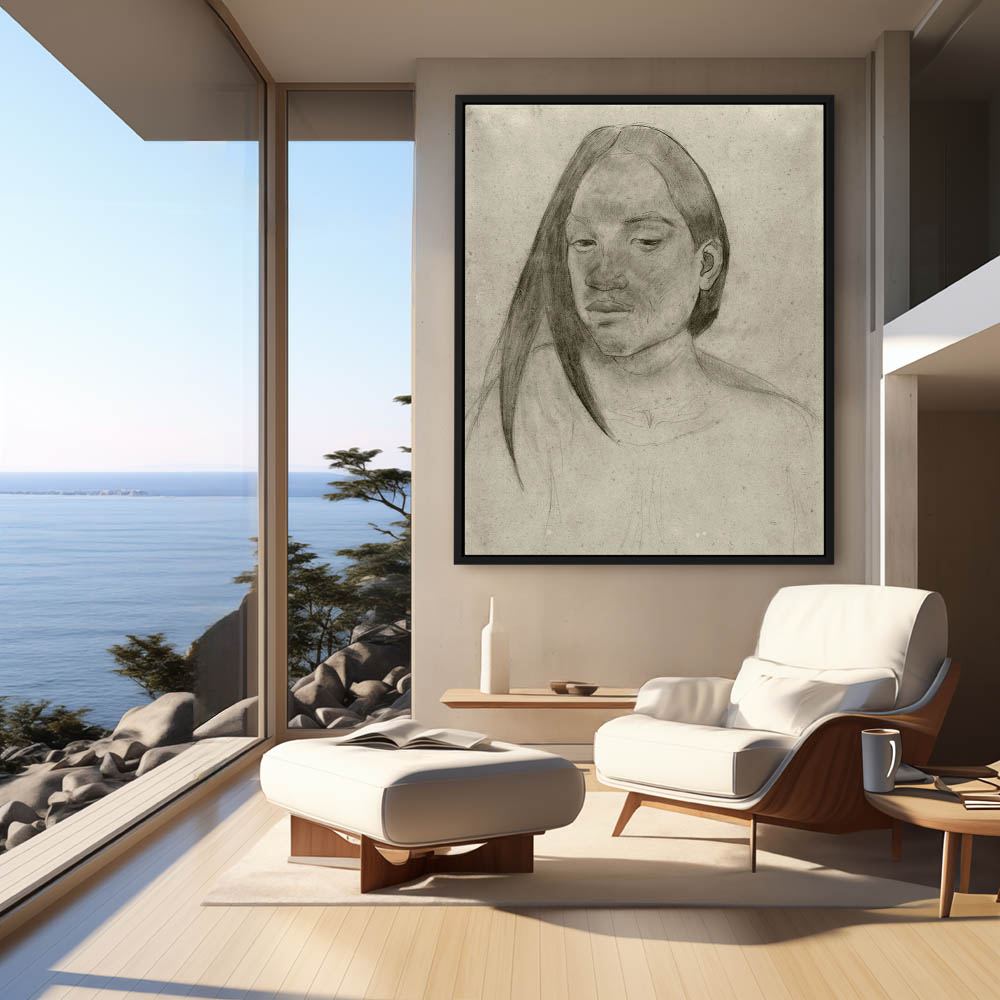 Vintage Figurative Drawing of the Head of a Tahitian Woman
