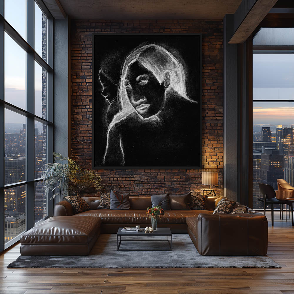 Vintage Abstract Portrait Painting of a Native Girl with a Yellow Flower in her Hair
