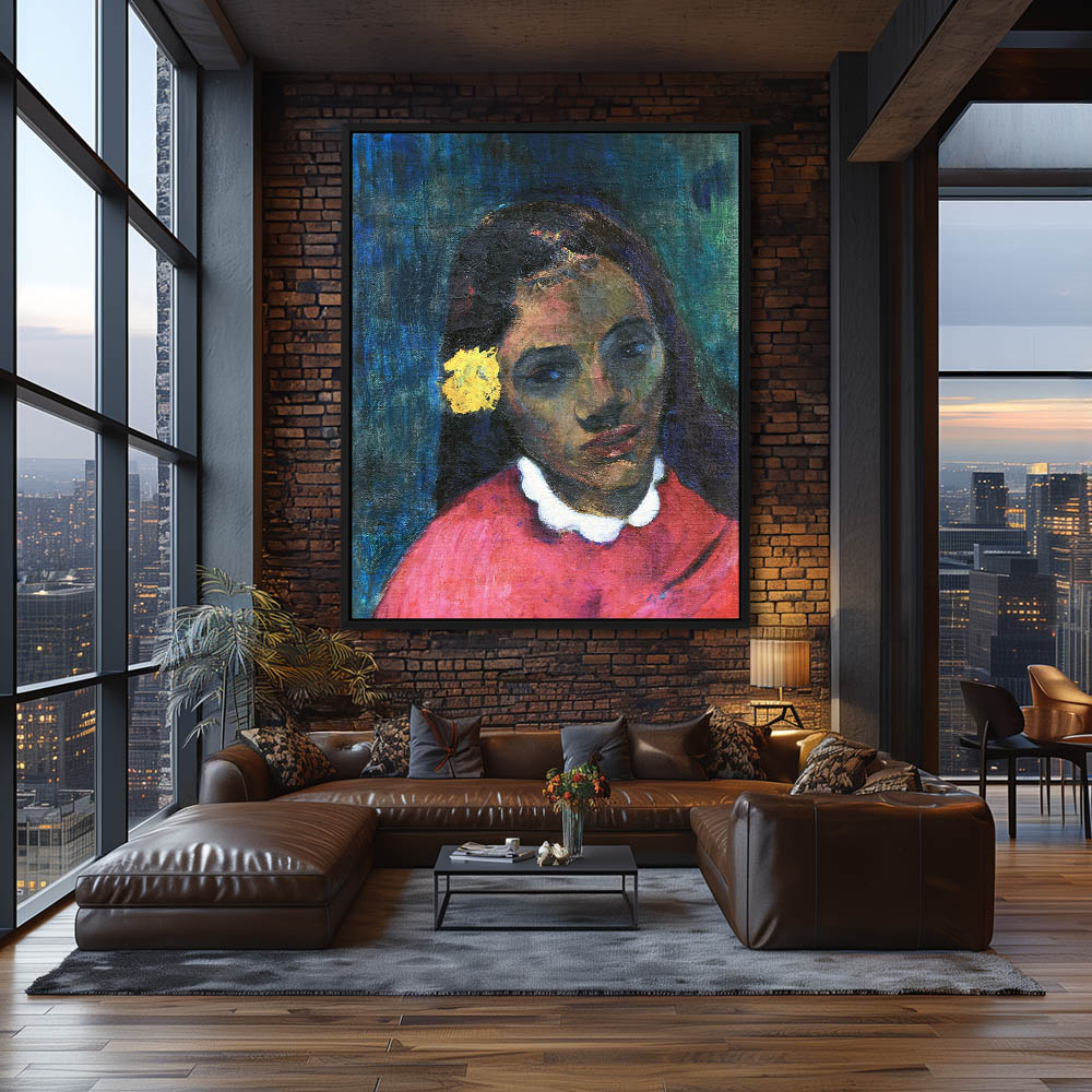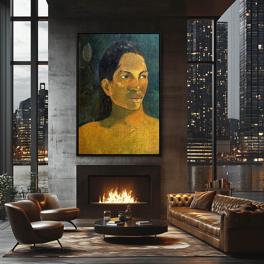 Vintage Abstract Portrait Painting of the Head of a Tahitian Woman