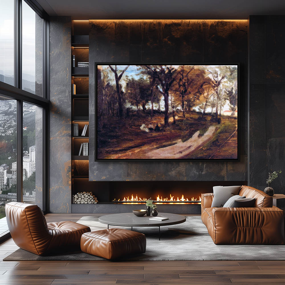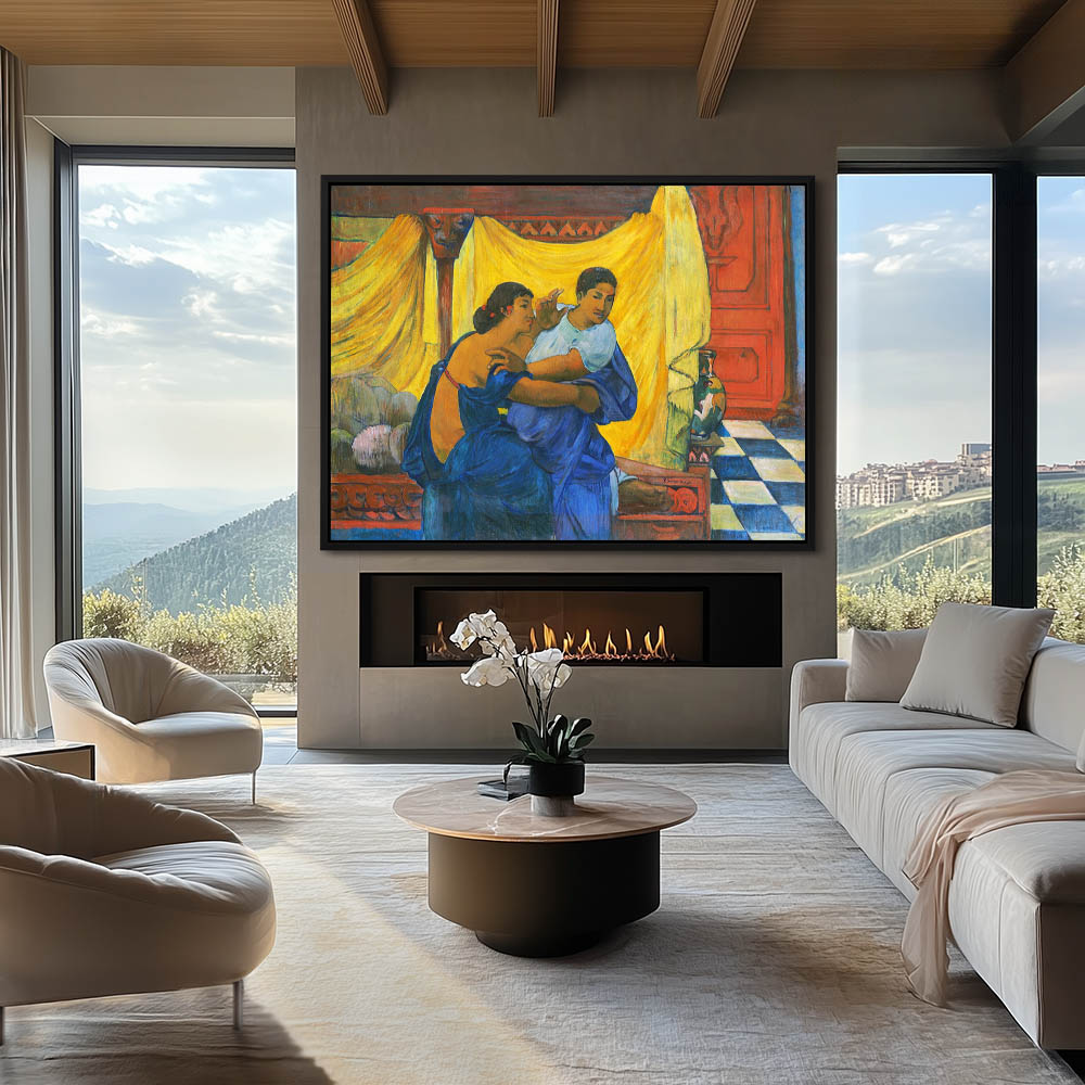 Vintage Home Interior Painting with Figures at the Piano