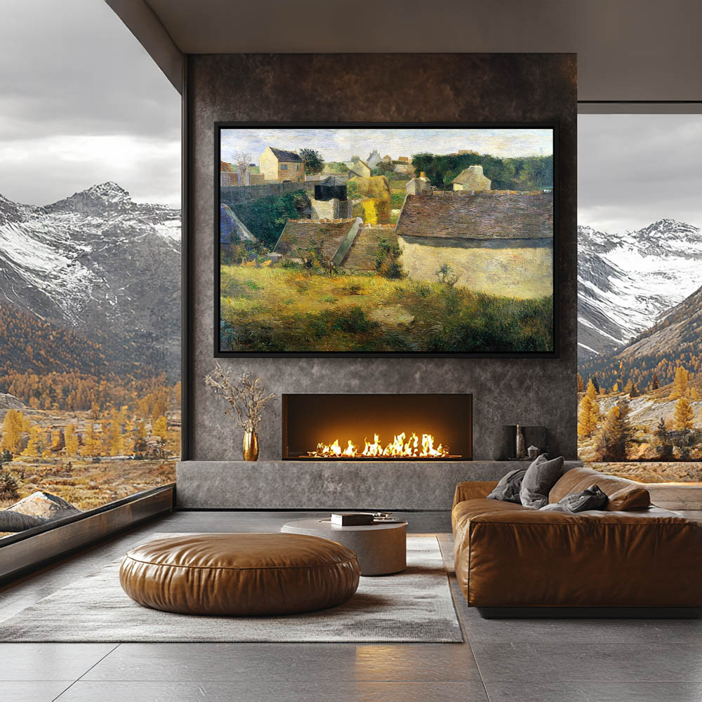 Vintage Landscape Painting with Huts