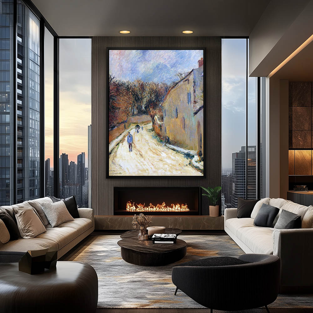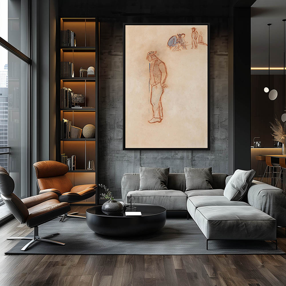 Vintage Abstract Farm Landscape Painting with a Farmer Walking his Dog next to the Fench with Cows