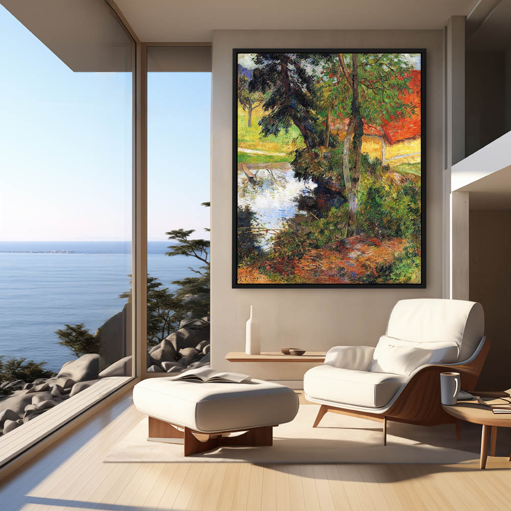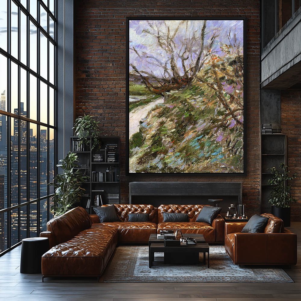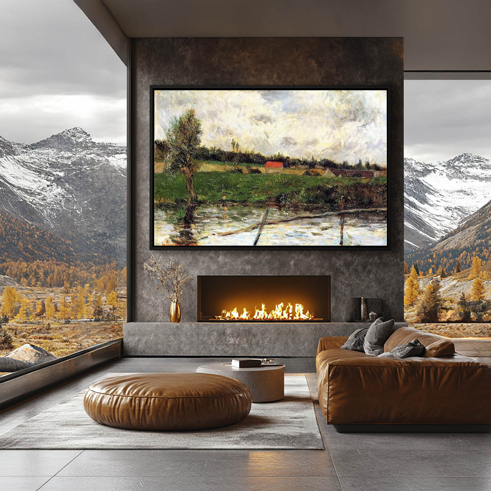 Vintage Landscape Painting of a River Bank